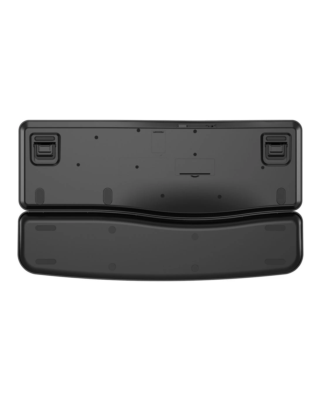 - The keyboard has six hotkeys for multimedia functions and a built-in wrist rest.