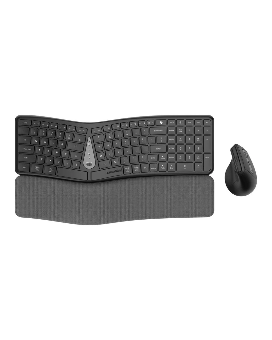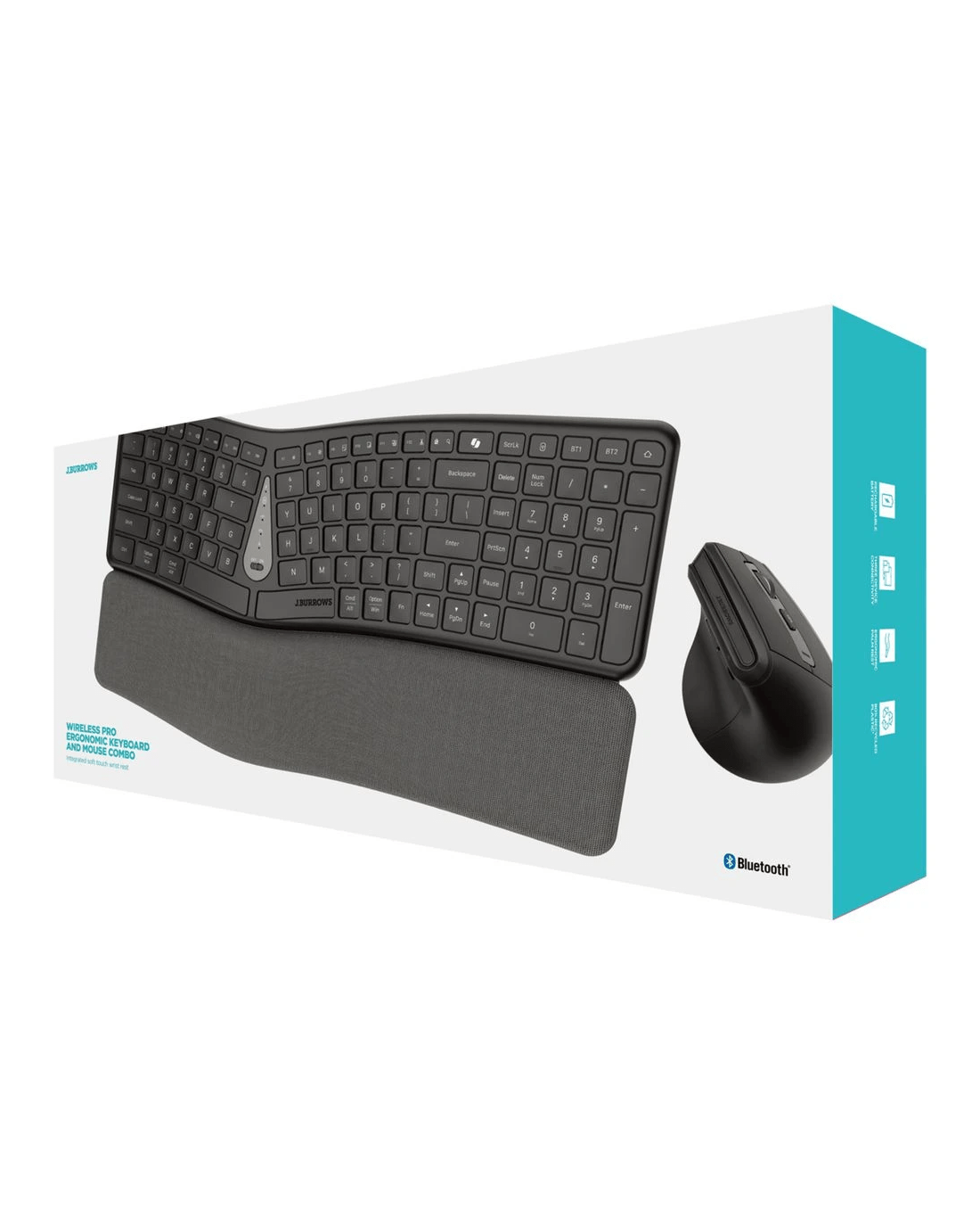 The J.Burrows Ergonomic Keyboard and Mouse Combo is ideal for working comfortably throughout the day. They connect via Bluetooth 5.0 to eliminate the hindrance of cords, and the mouse has an integrated palm rest to eliminate strain. The keyboard has internet and multimedia hot keys.