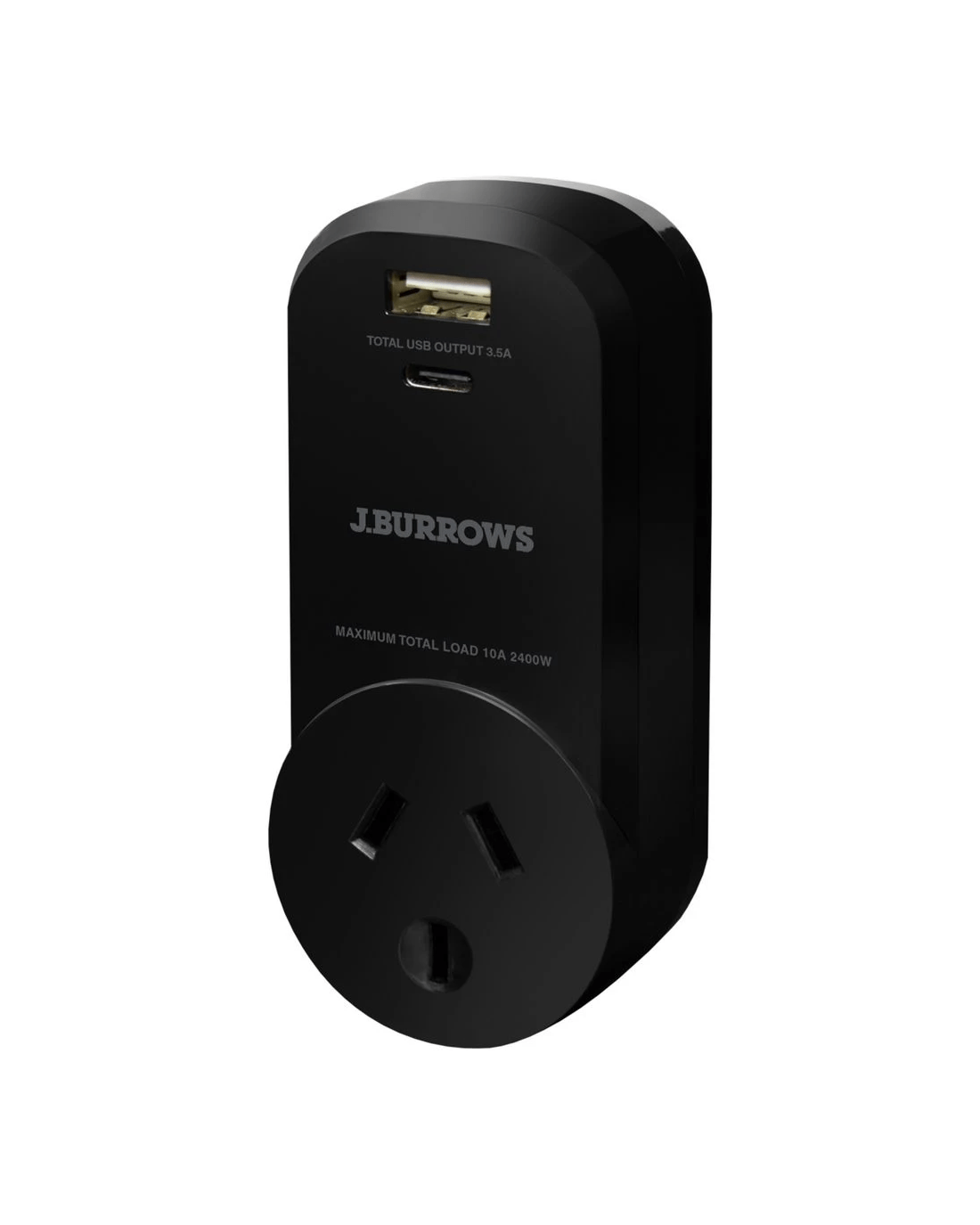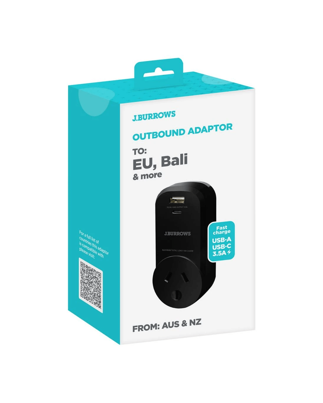 Prepare for your travels with this J.Burrows Travel Adaptor. It connects one Australian mains port to an EU plug, so you can use your appliances as you trot the globe. It also has a USB-A and USB-C port for charging devices like your smartphone.