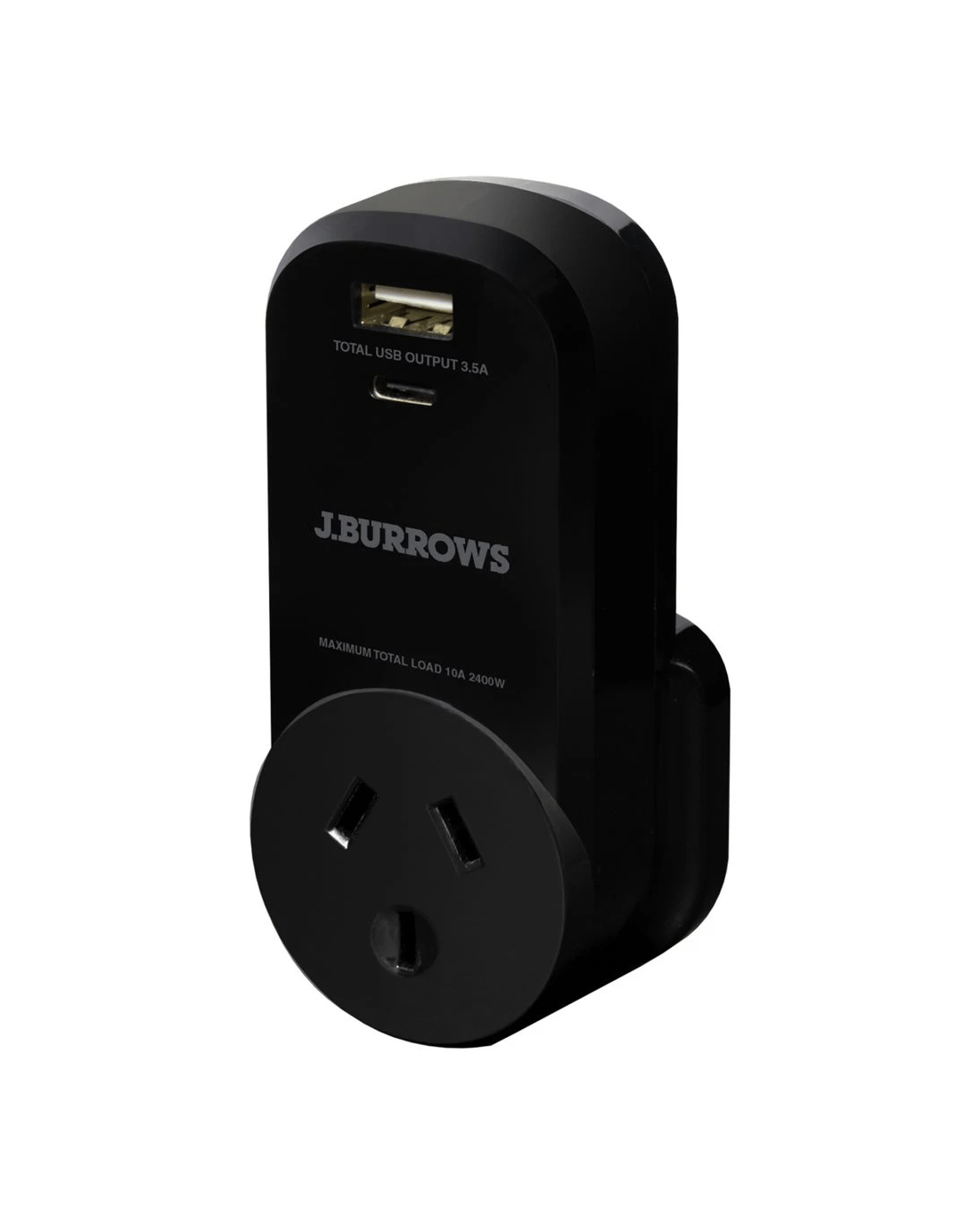 Prepare for your travels with this J.Burrows Travel Adaptor. It connects one Australian mains port to a UK plug, so you can use your appliances as you trot the globe. It also has a USB-A and USB-C port for charging devices like your smartphone.