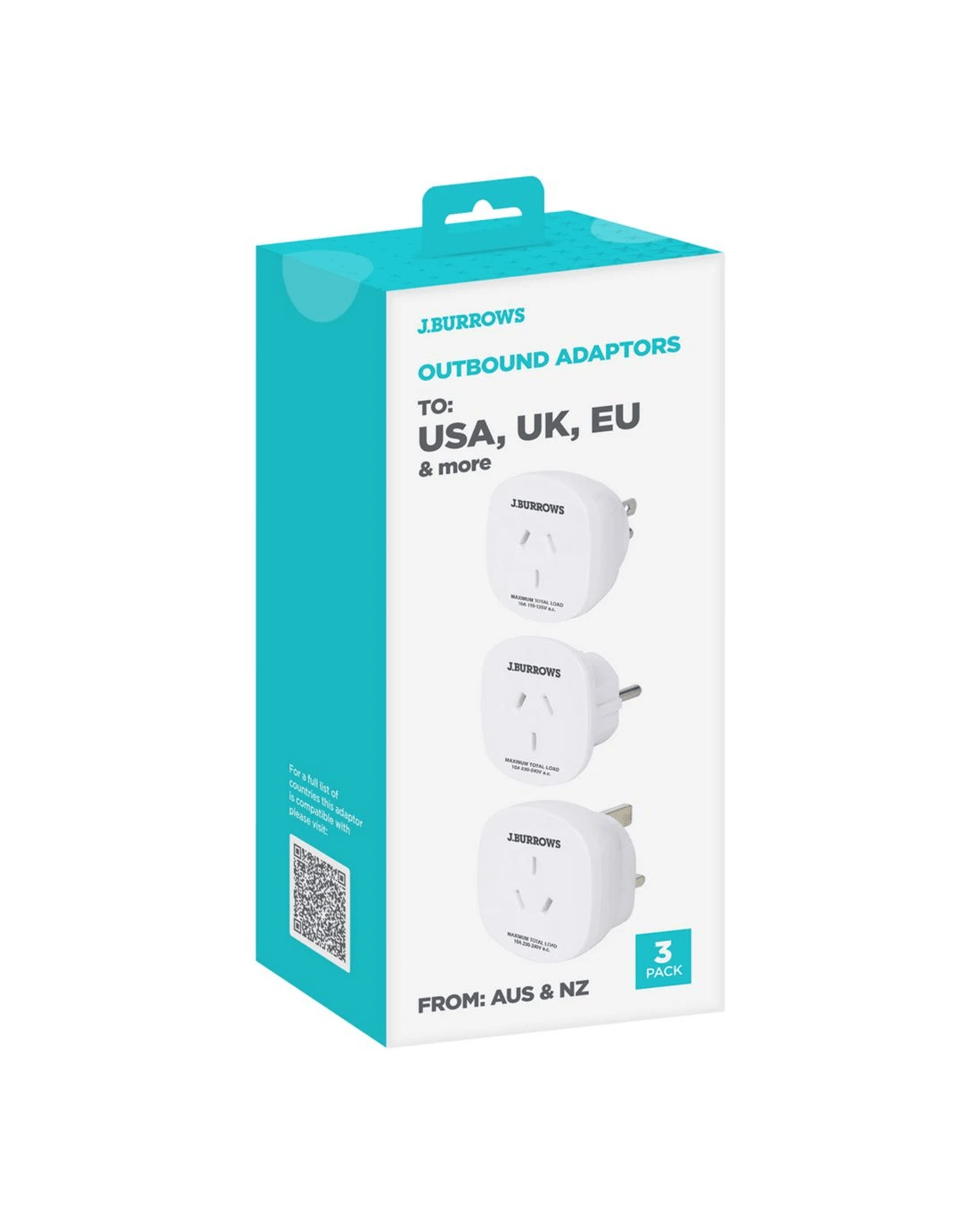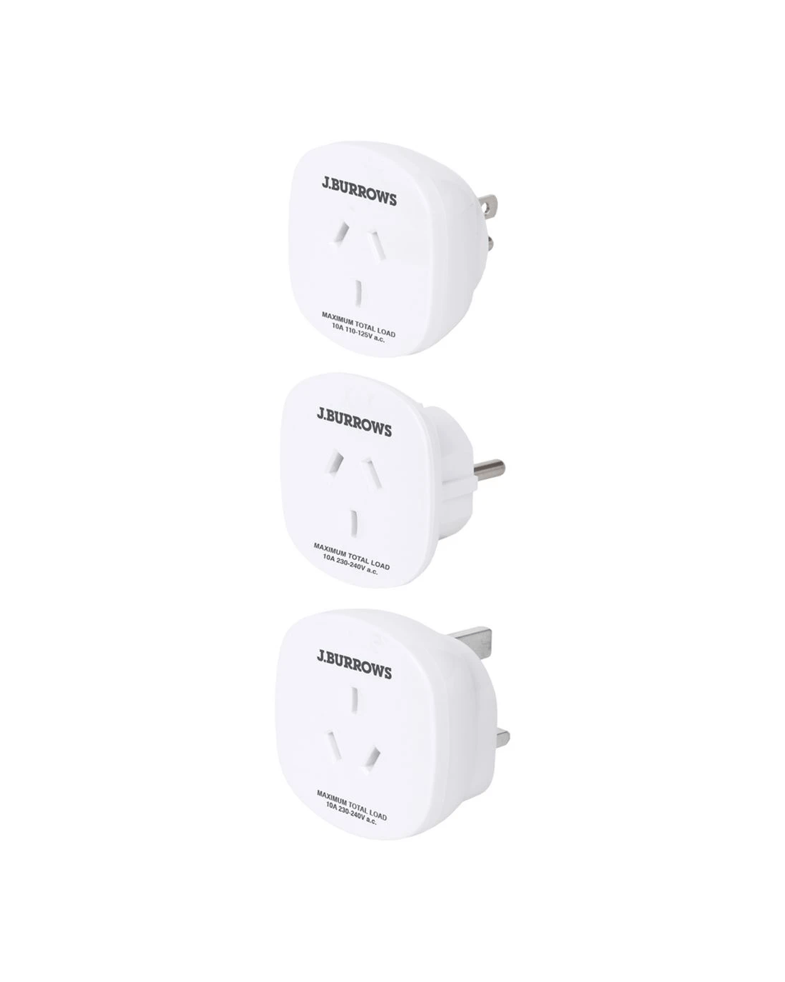 Prepare for your travels with these J.Burrows Travel Adaptors. The pack contains three adaptors that will let you connect your Australian mains ports to plugs in the USA, the UK and EU, so you can use your appliances as you trot the globe.