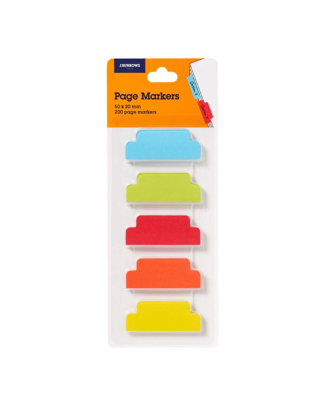 - Each page marker measures 20 x 50 mm.