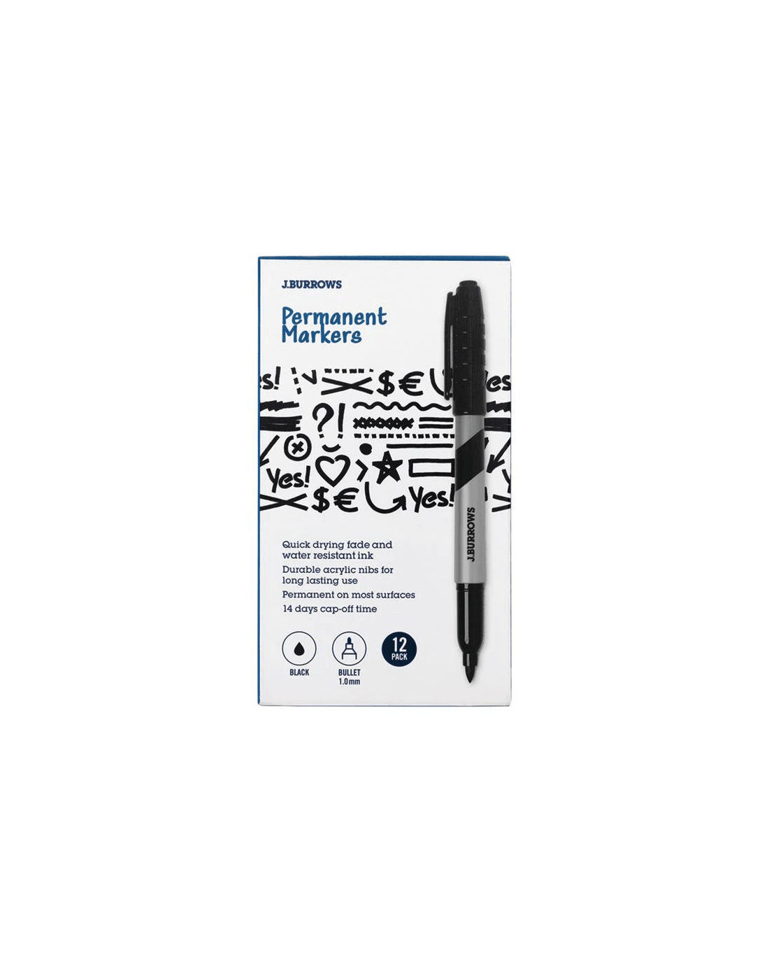 Sold by OfficeworksJ.Burrows Permanent Markers 1mm Bullet Black 12 Pack