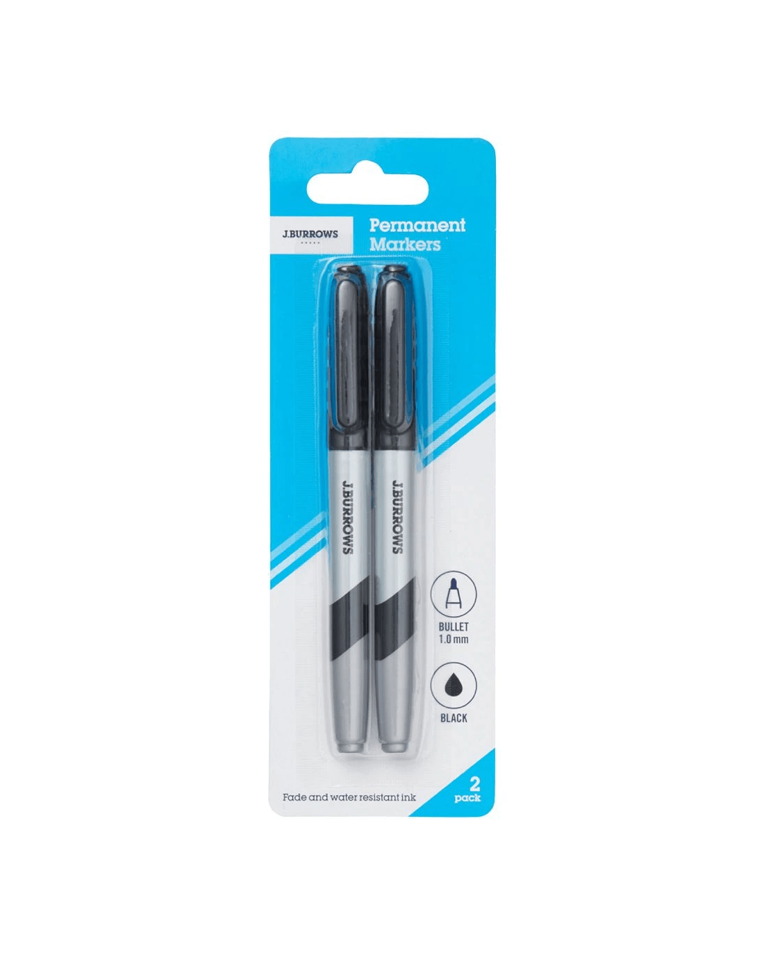 Sold by OfficeworksJ.Burrows Permanent Markers 1mm Bullet Black 2 Pack