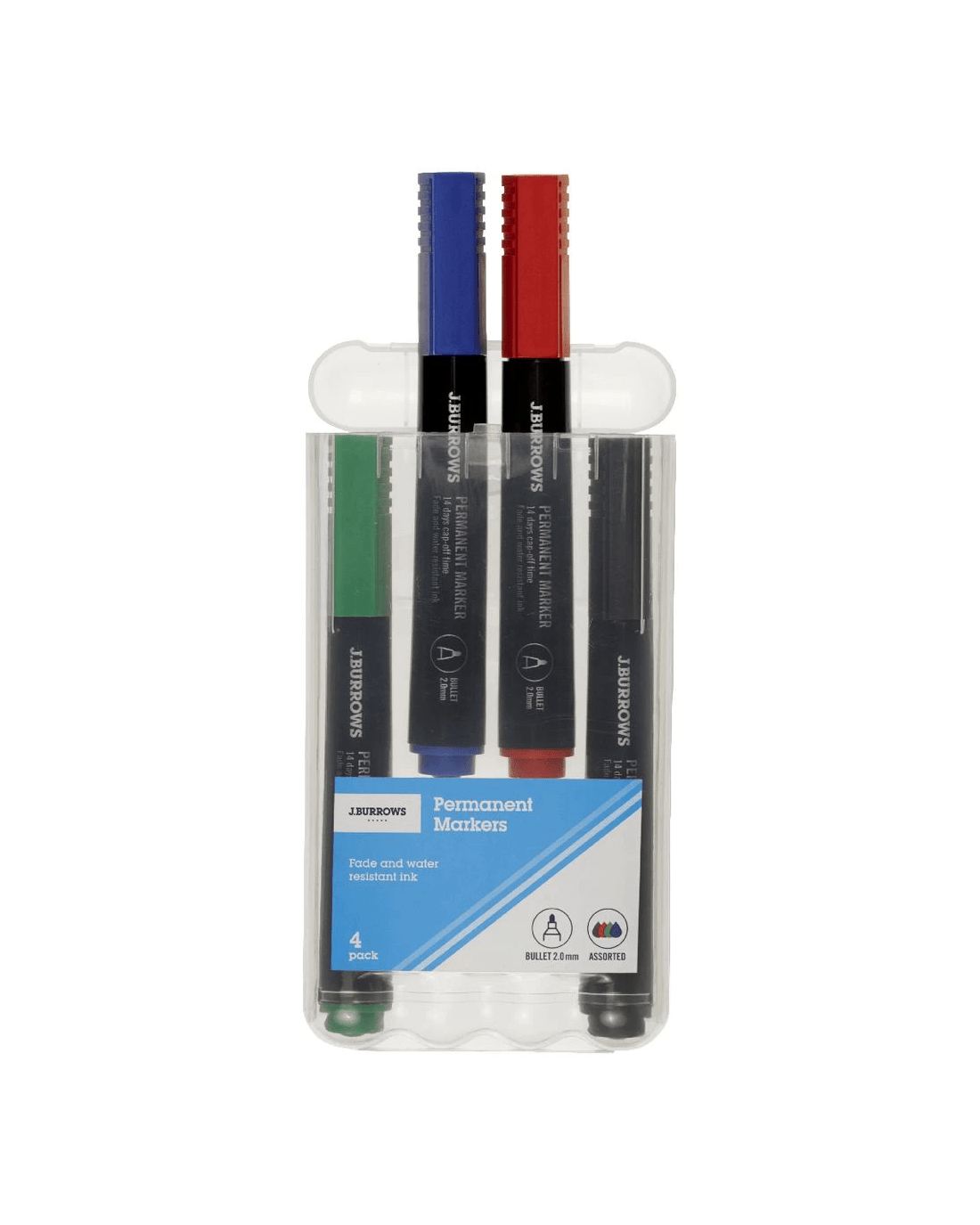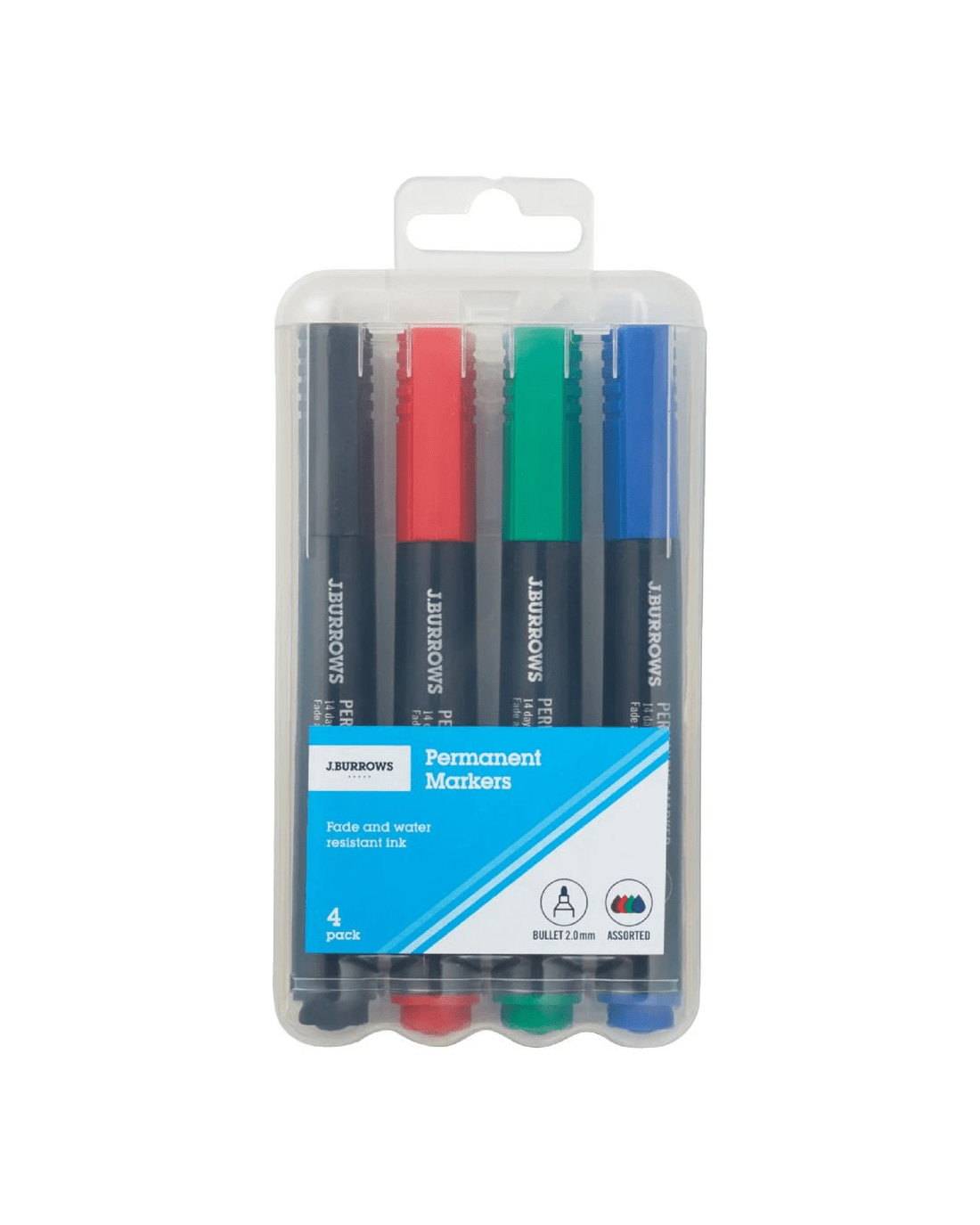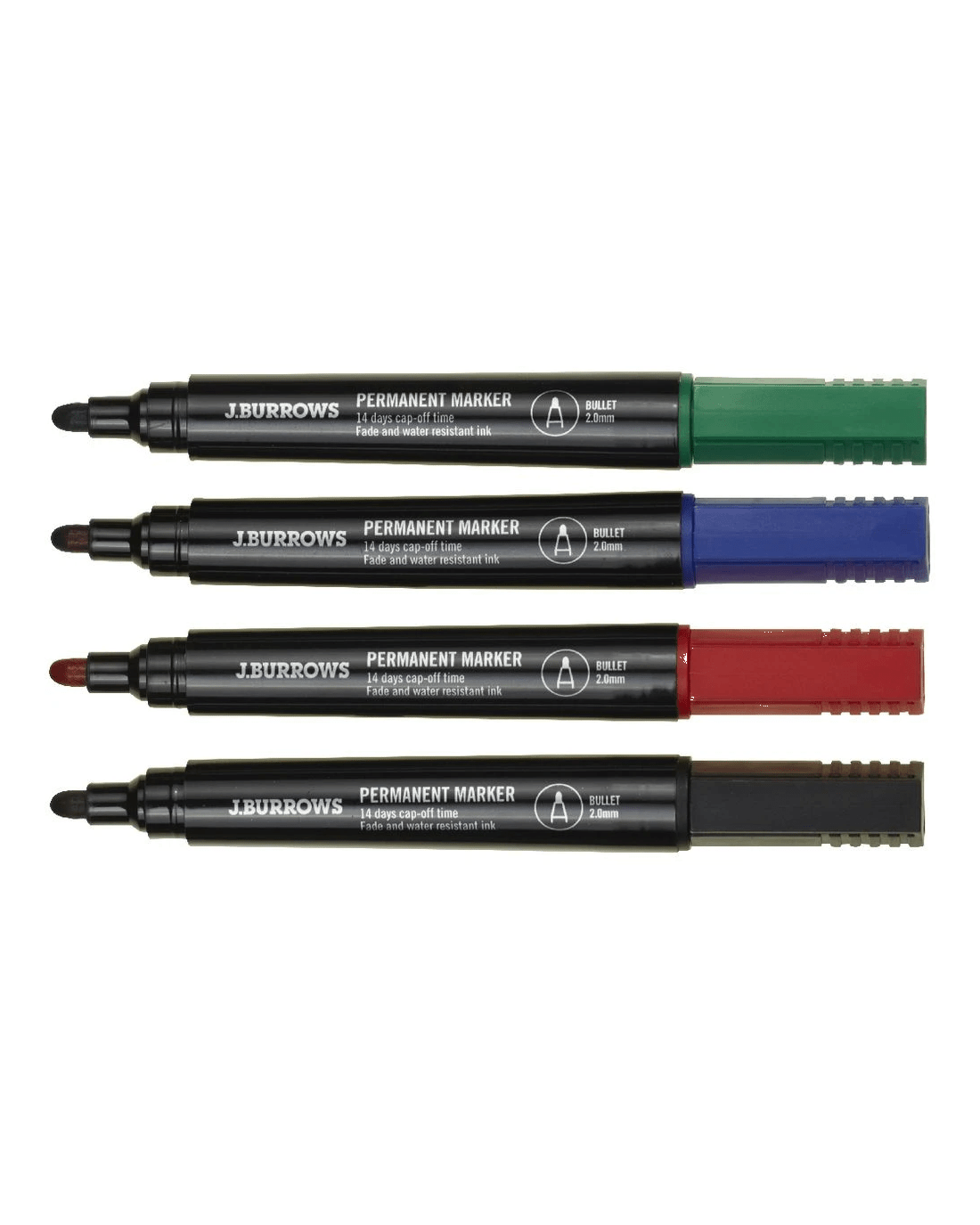 Sold by OfficeworksJ.Burrows Permanent Markers Bullet Assorted 4 Pack
