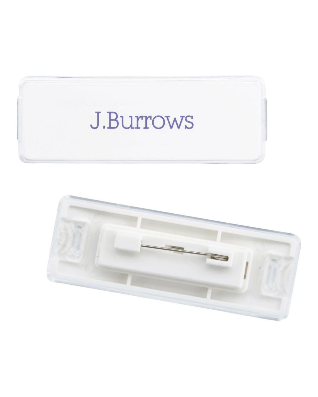 These J.Burrows Name Badges are perfect for when you want to make yourself identifiable at events and functions. They have a pin clasp and can have printed or written cards inserted.