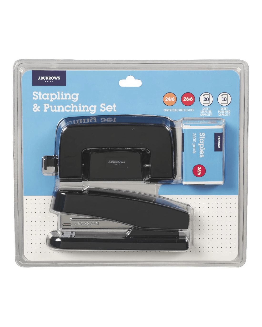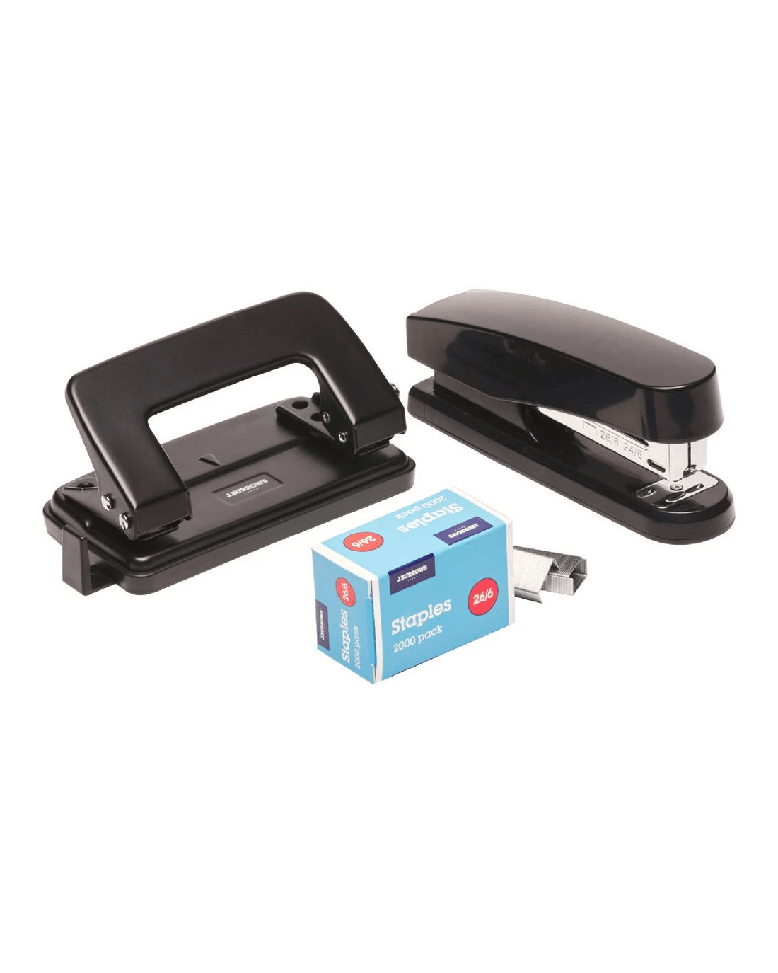 J.Burrows Plastic Stapler/Hole Punch Value Pack Black