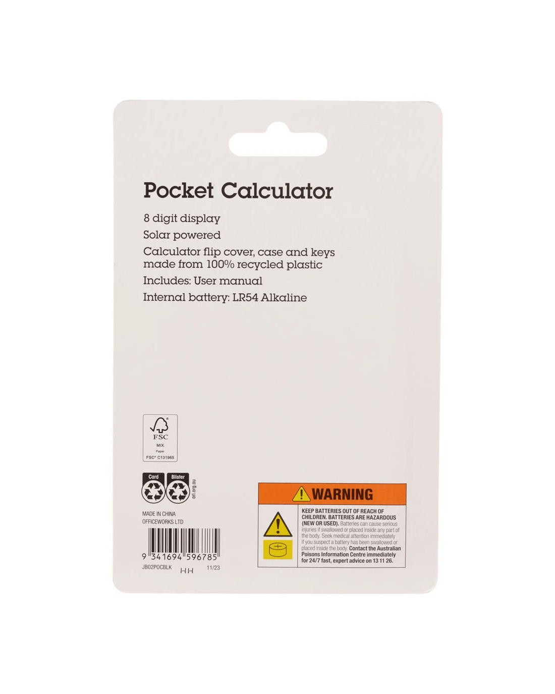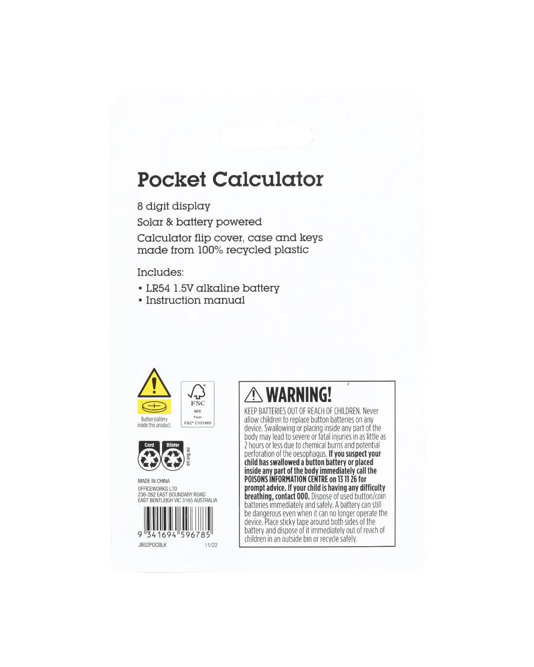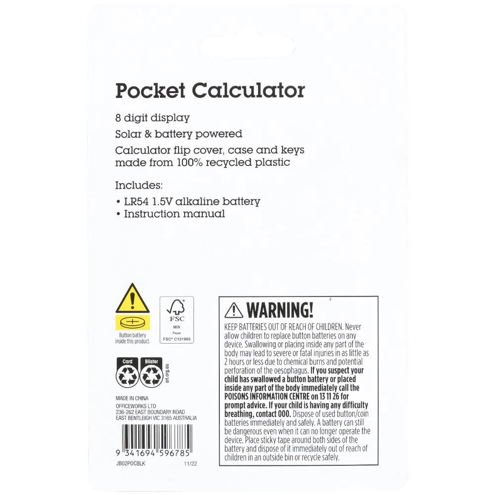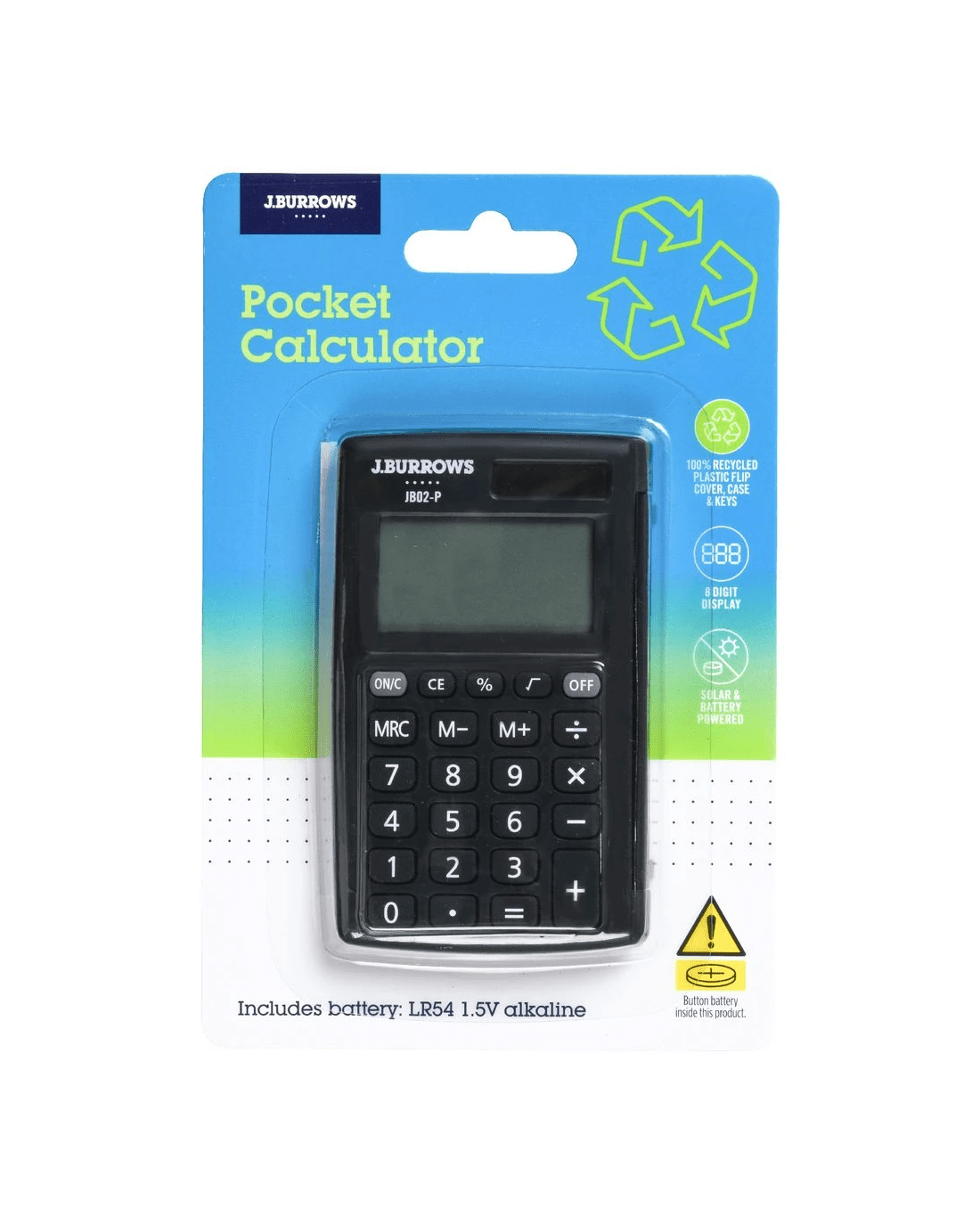 J.Burrows Pocket 8 Digit Calculator Black