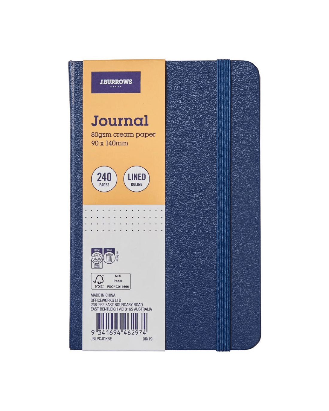 Sold by OfficeworksJ.Burrows Pocket Journal Ruled 240 Page Dark Blue