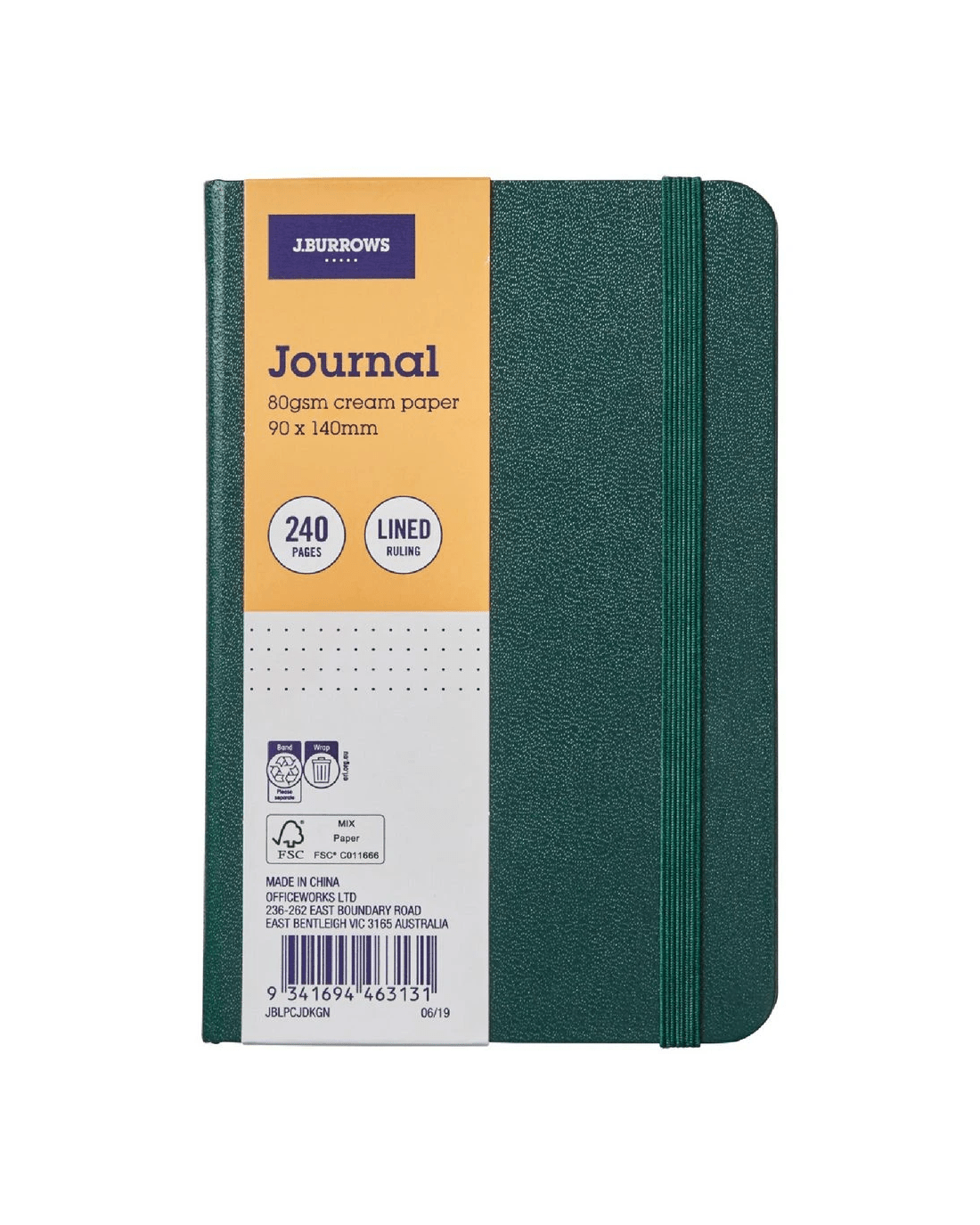 Sold by OfficeworksJ.Burrows Pocket Journal Ruled 240 Page Dark Green
