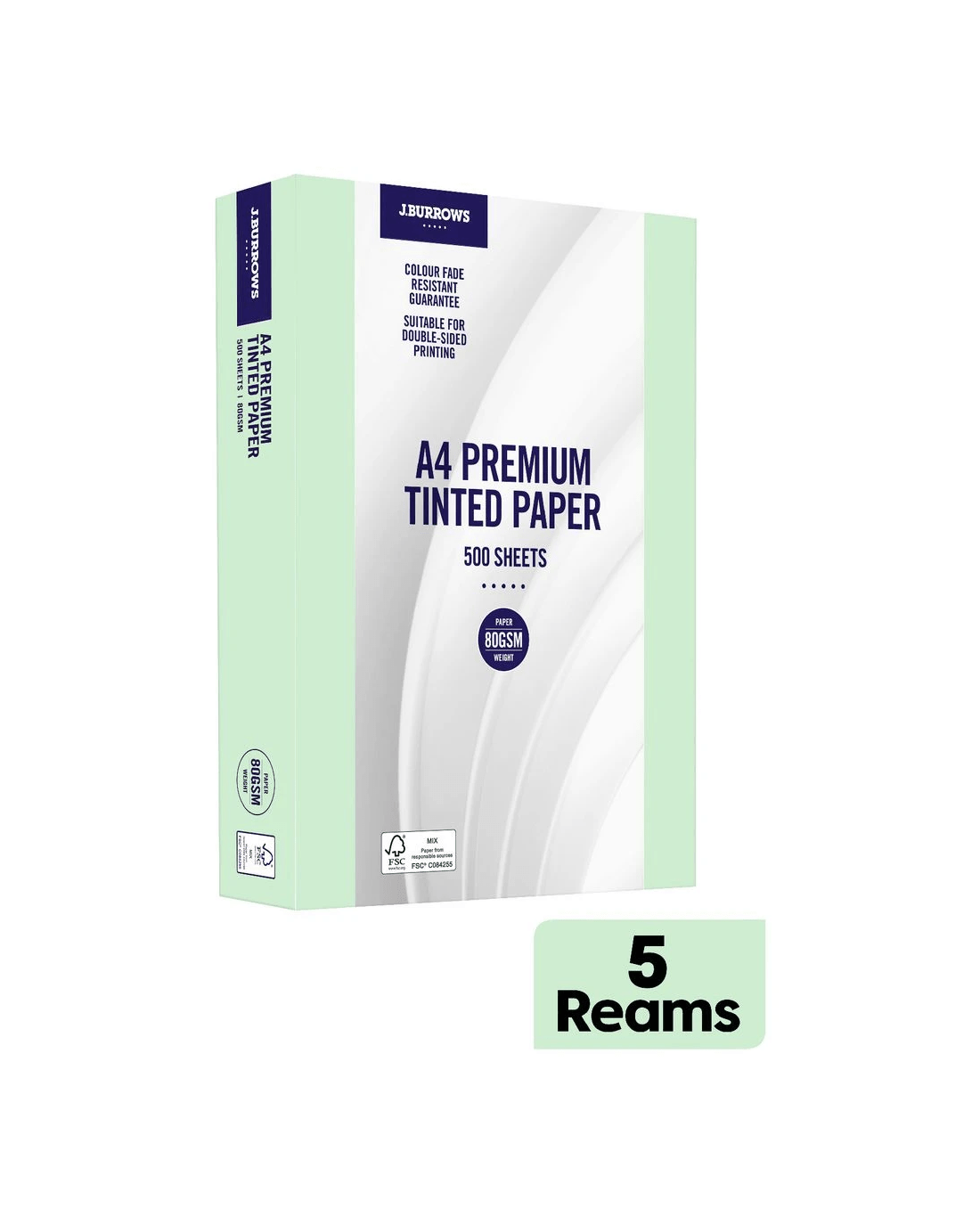 Sold by OfficeworksJ.Burrows Premium A4 Tinted Paper Ream Green 5 Pack
