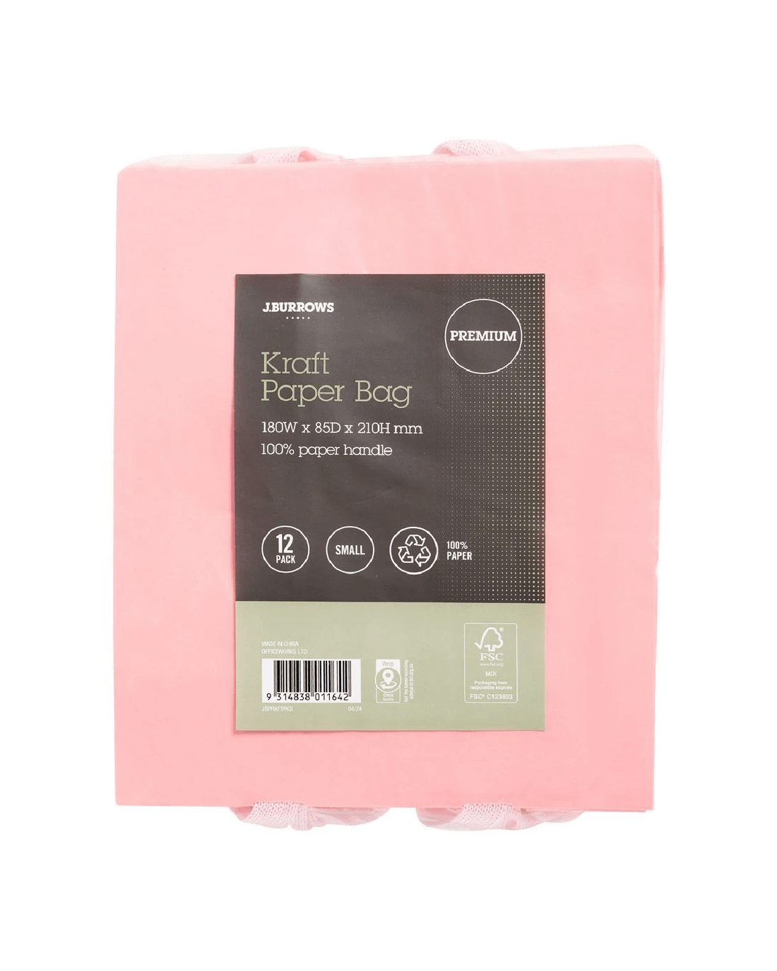 Sold by OfficeworksJ.Burrows Premium Kraft Bags Small Pink 12 Pack