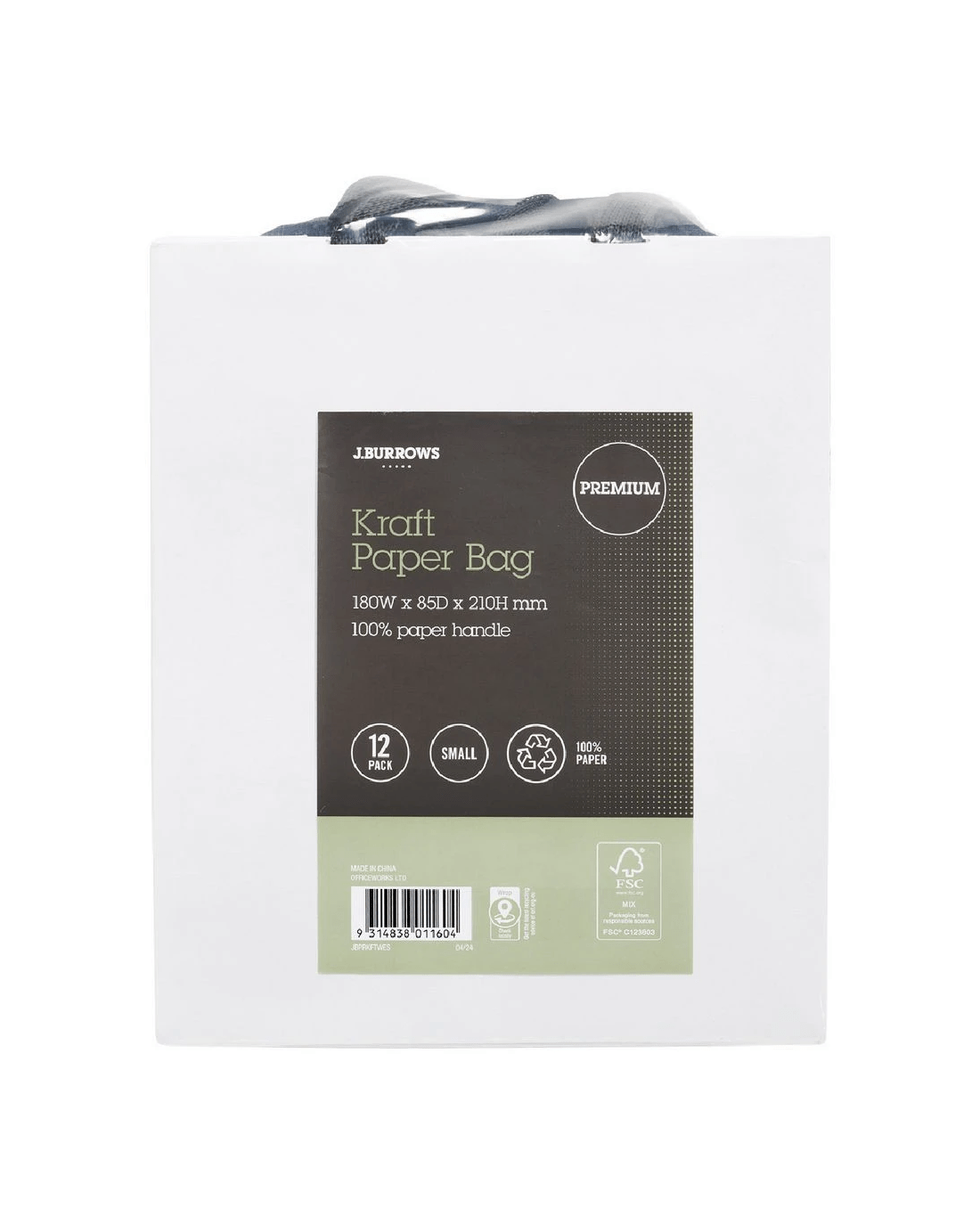 J.Burrows Premium Kraft Bags Small White 12 Pack
