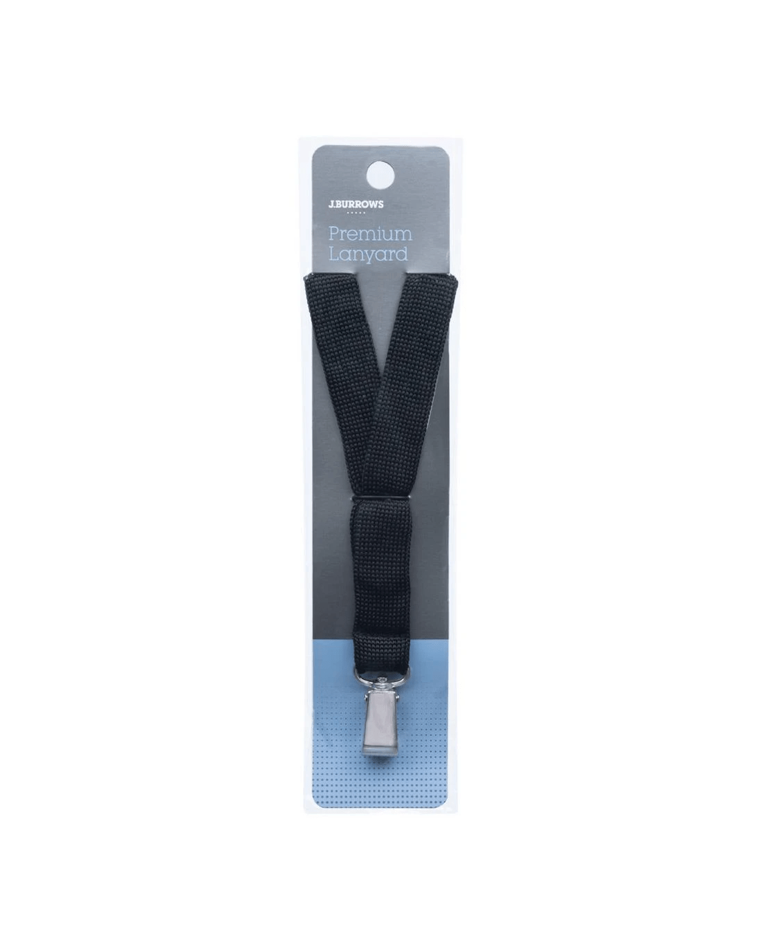 This J.Burrows Premium Lanyard can be used to keep important information like ID with you while you're at events. It has a clasp which allows you to easily attach holders and badges.