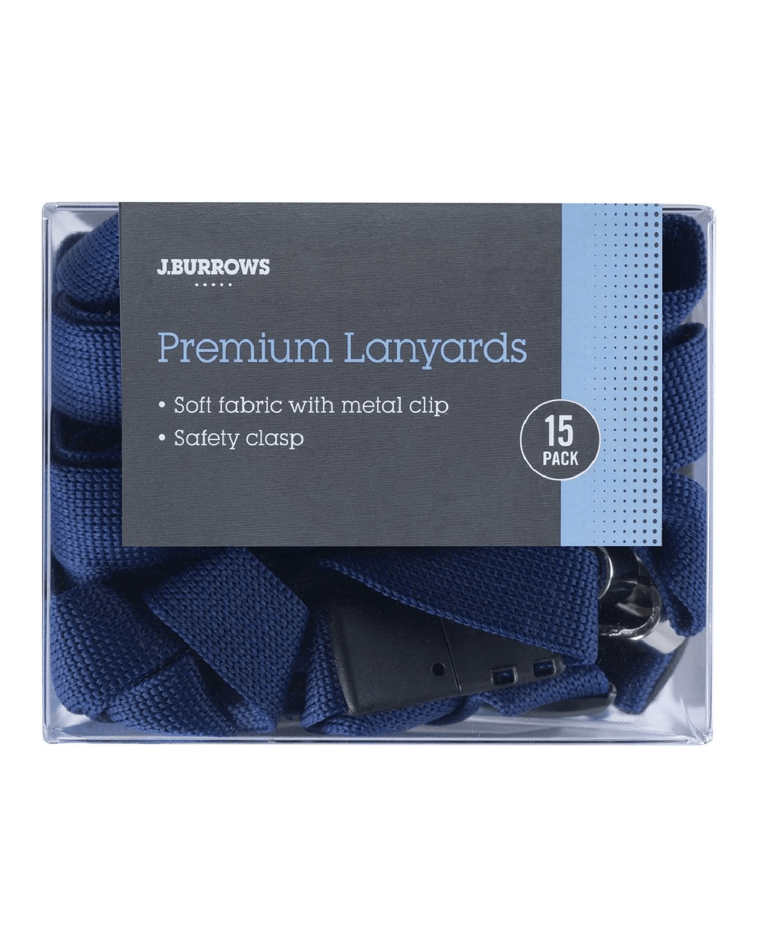J.Burrows Premium Lanyards with Metal Clip Blue 15 Pack