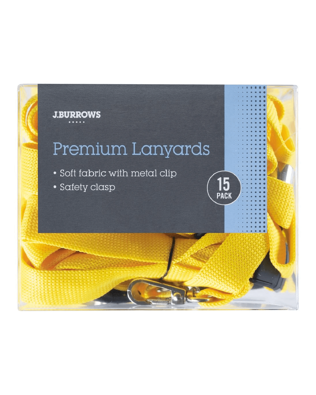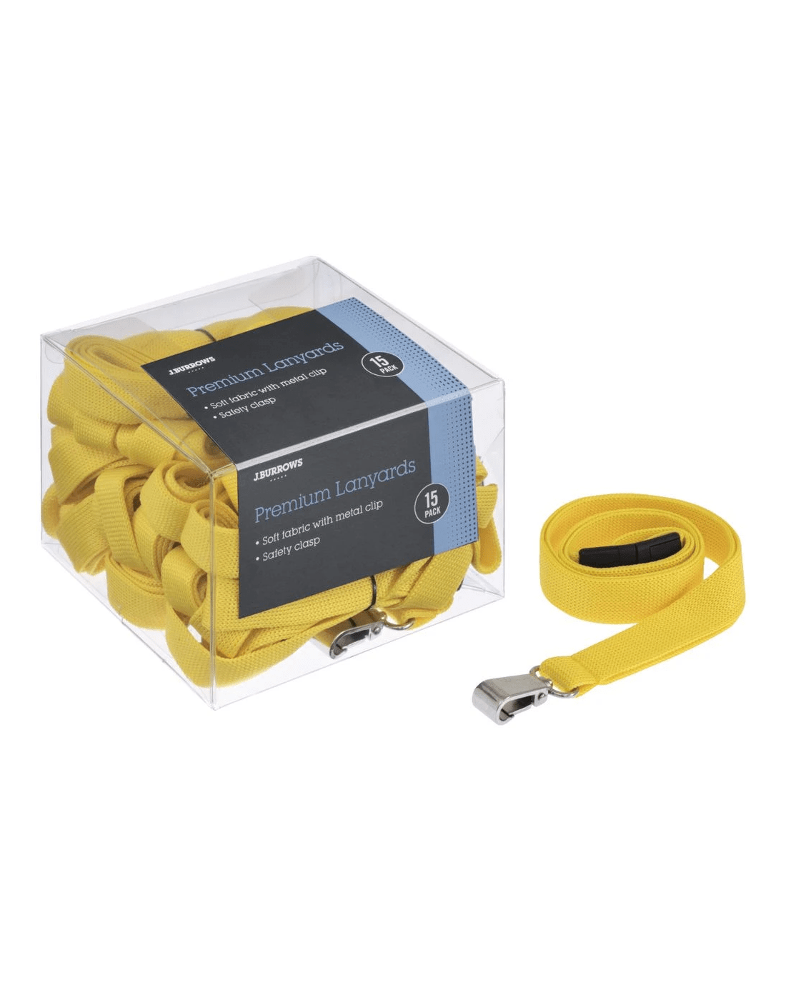 Sold by OfficeworksJ.Burrows Premium Lanyards with Metal Clip Yellow 15 Pack