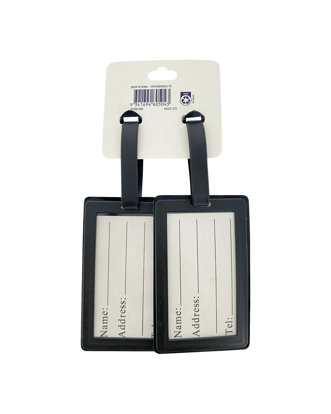 - Each tag has a label insert measuring 90 x 50 mm, where you can write your contact details.