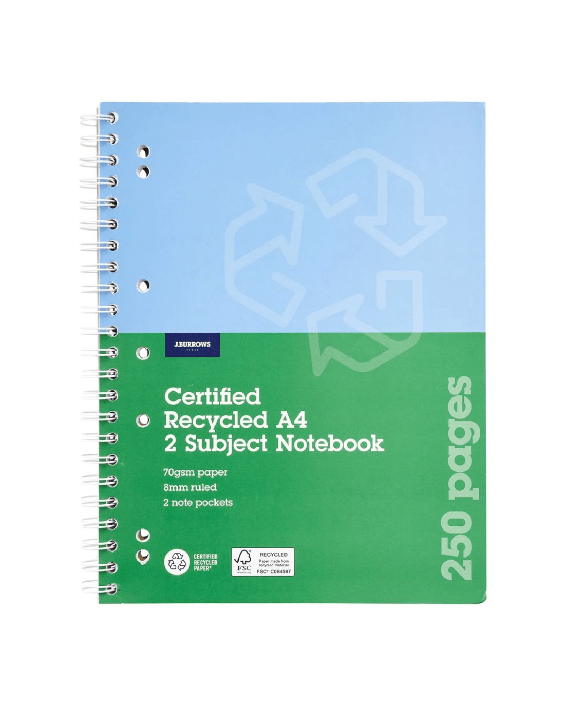 J.Burrows Recycled A4 2 Subject Notebook 250 Page