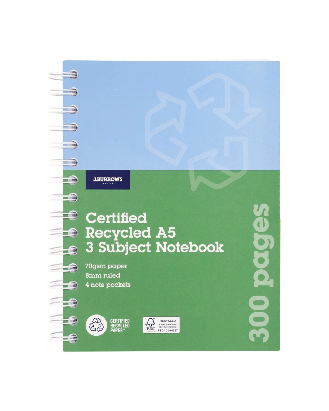 Sold by OfficeworksJ.Burrows Recycled A5 3 Subject Notebook 300 Page