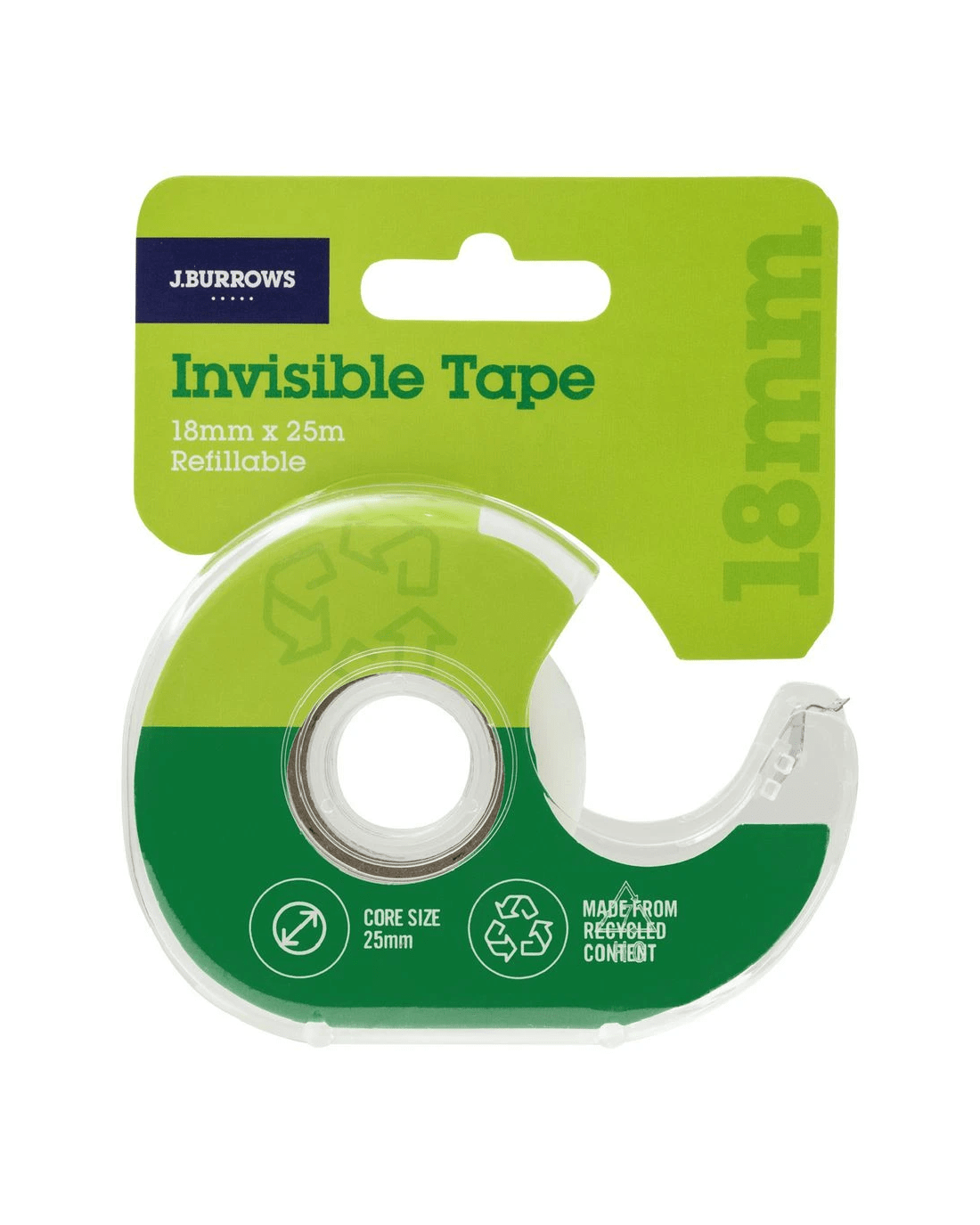 J.Burrows Recycled Invisible Tape & Dispenser 18mm x 25m
