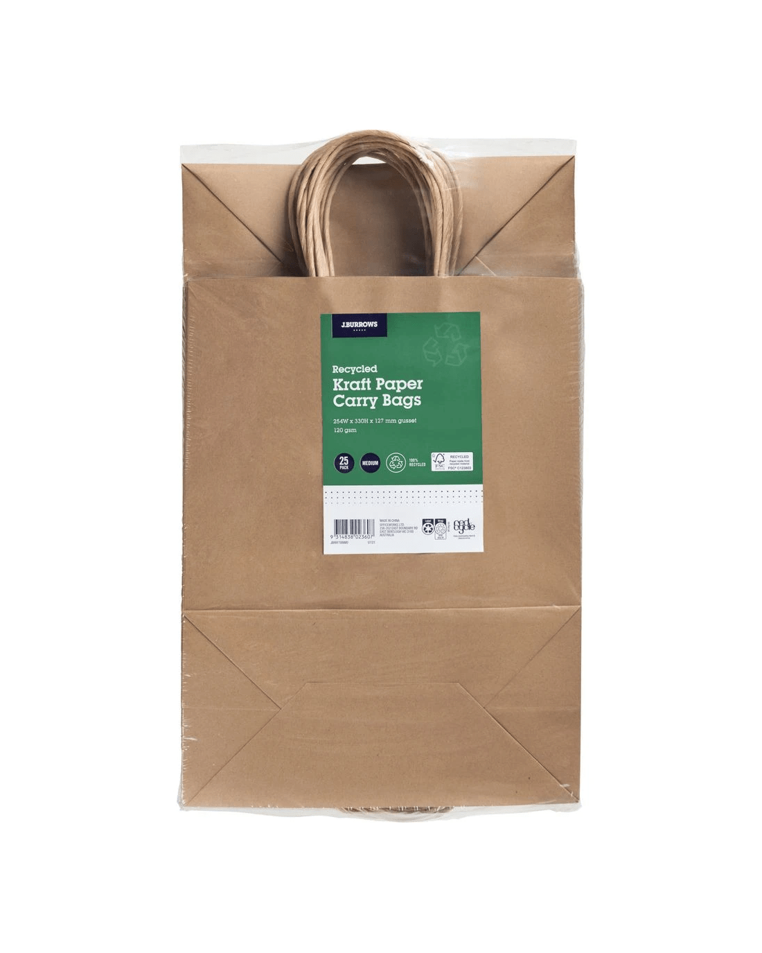 Sold by OfficeworksJ.Burrows Recycled Kraft Bag Medium Brown 25 Pack