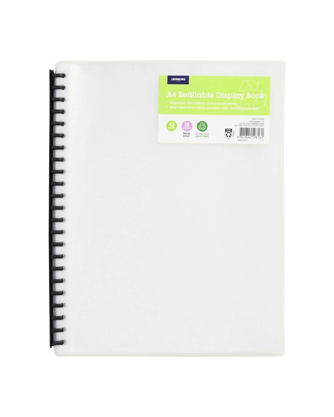 Sold by OfficeworksJ.Burrows Refillable Display Book 40 Pockets Clear