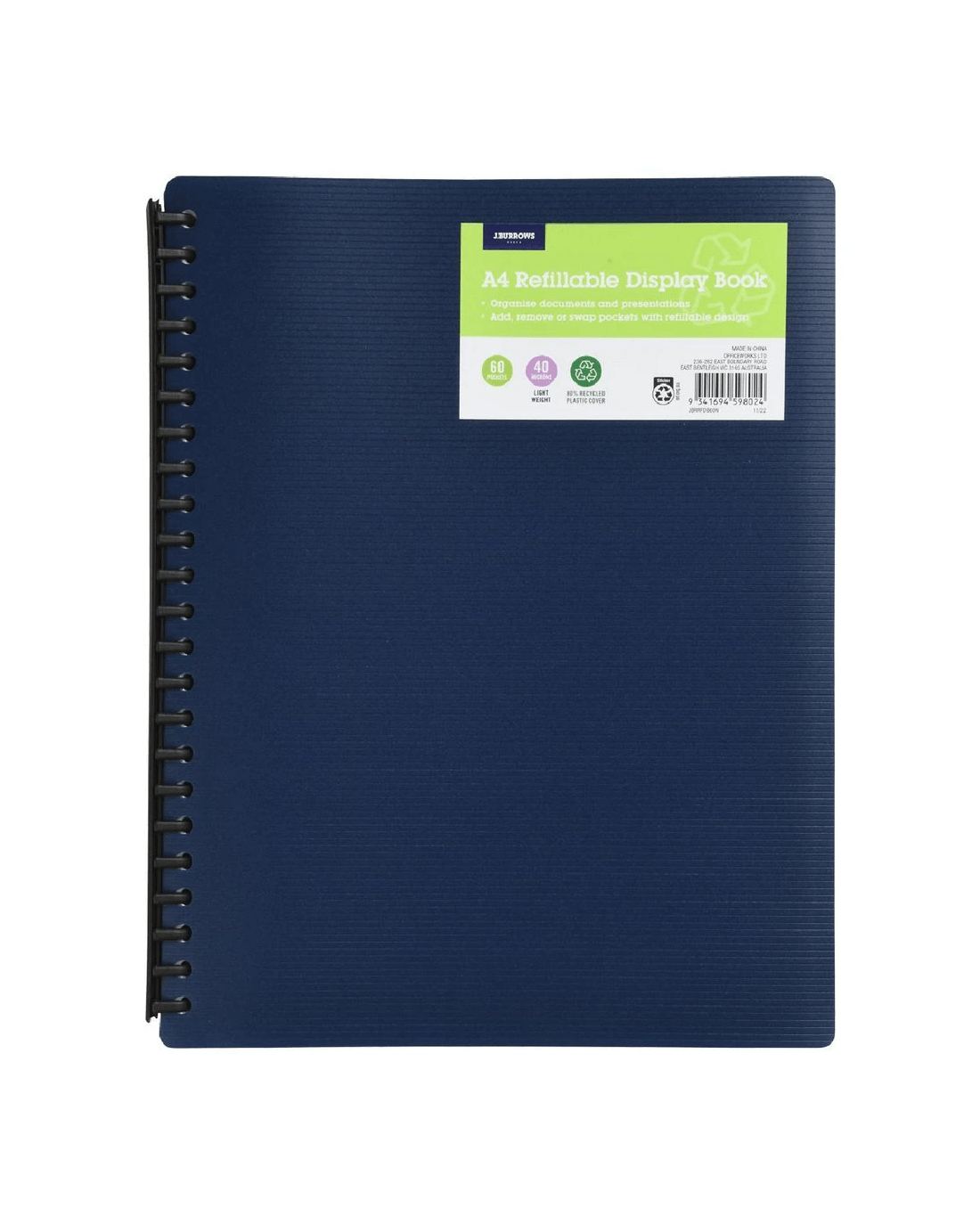 Sold by OfficeworksJ.Burrows Refillable Display Book 60 Pockets Navy