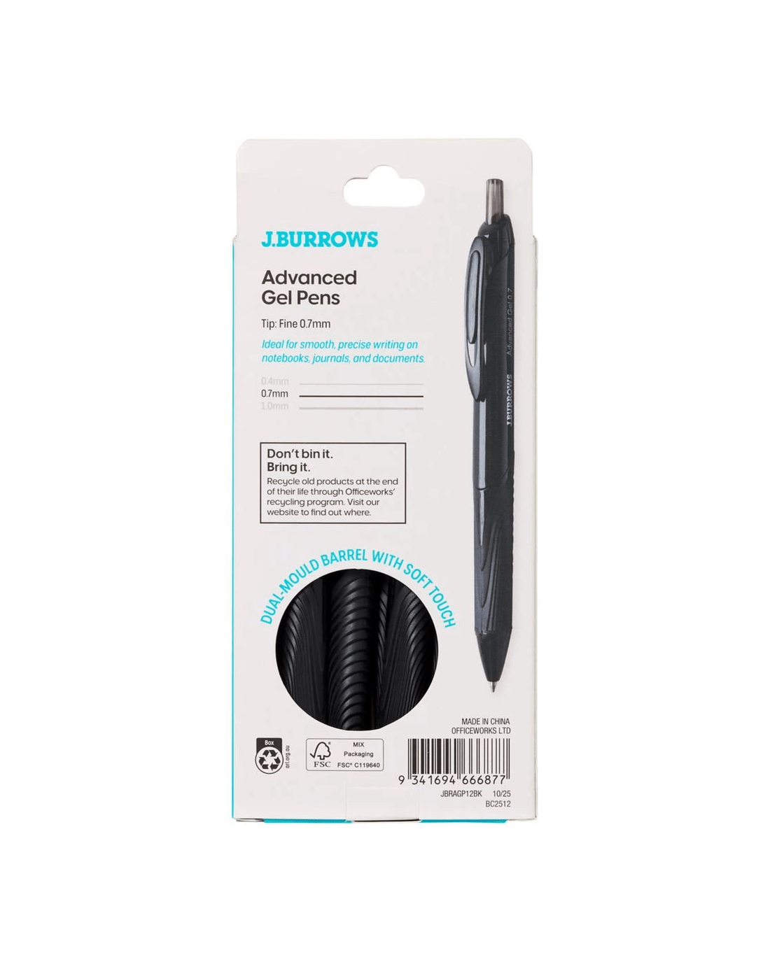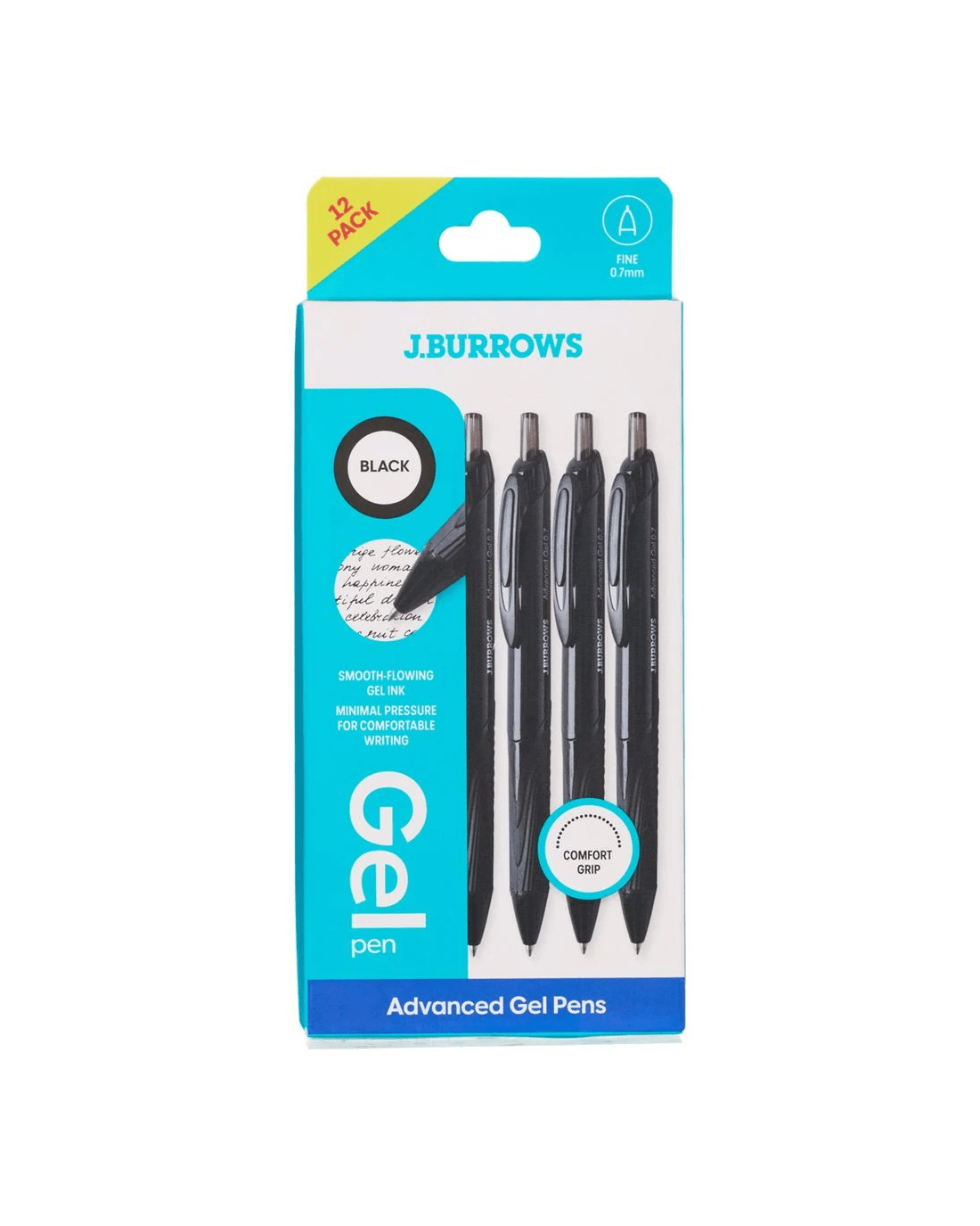 J.Burrows Retractable Advanced Gel Pen Black 12 Pack