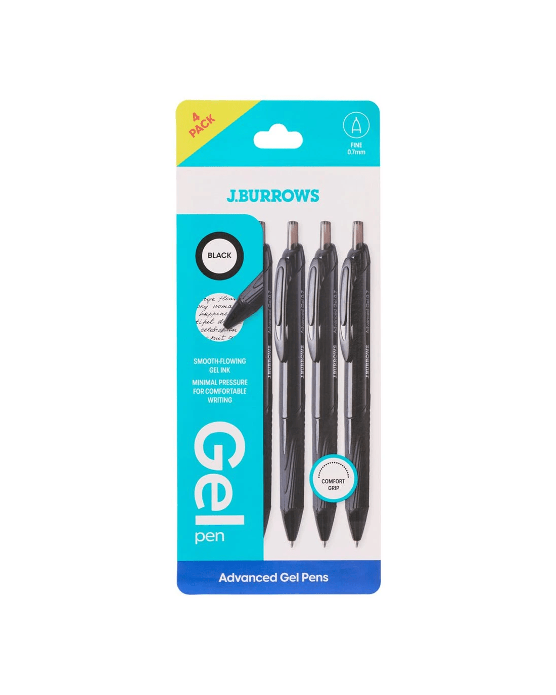 J.Burrows Retractable Advanced Gel Pen Black 4 Pack