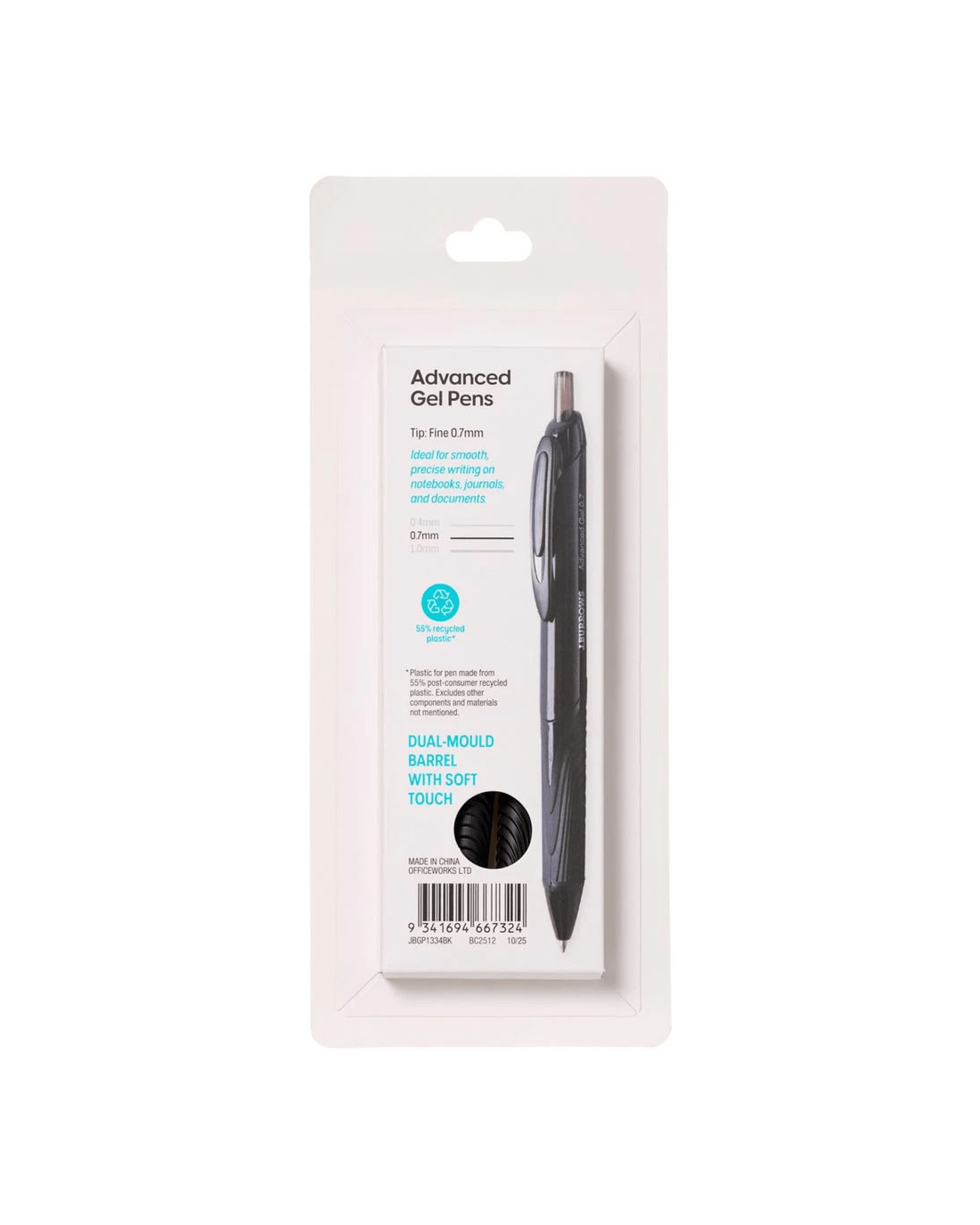 • Plastic for pen made from 55% post-consumer recycled plastic. Excludes other components and materials not mentioned.