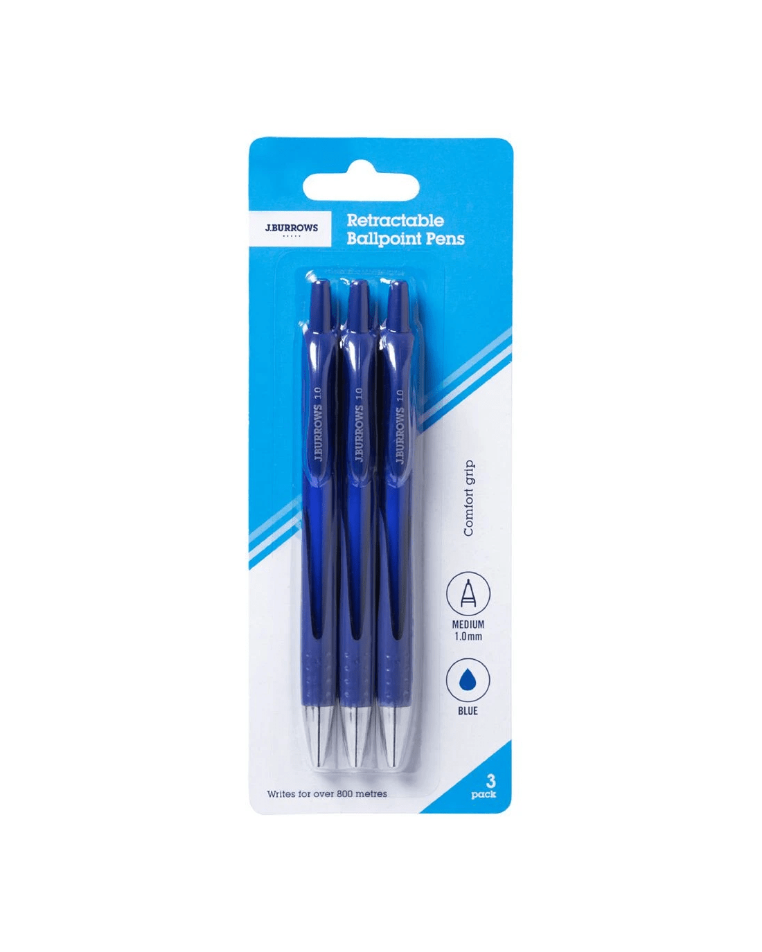 Sold by OfficeworksJ.Burrows Retractable Ballpoint Pens Blue 3 Pack
