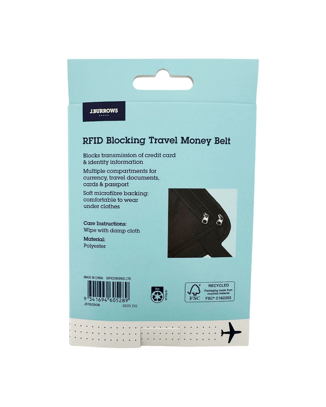 Sold by OfficeworksJ.Burrows RFID Travel Money Belt Black