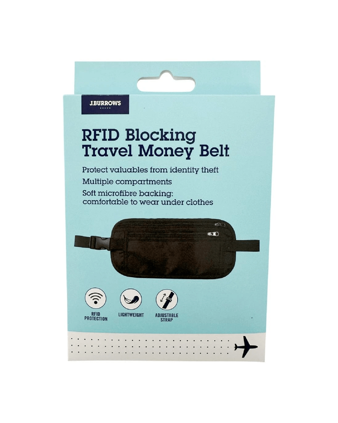 Keep your information safe as you embark on your next holiday or business trip with the J.Burrows RFID Travel Money Belt. The zip closure keeps all your belongings secure, with two compartments for organisation. The RFID-blocking ensures that your personal data is protected.
