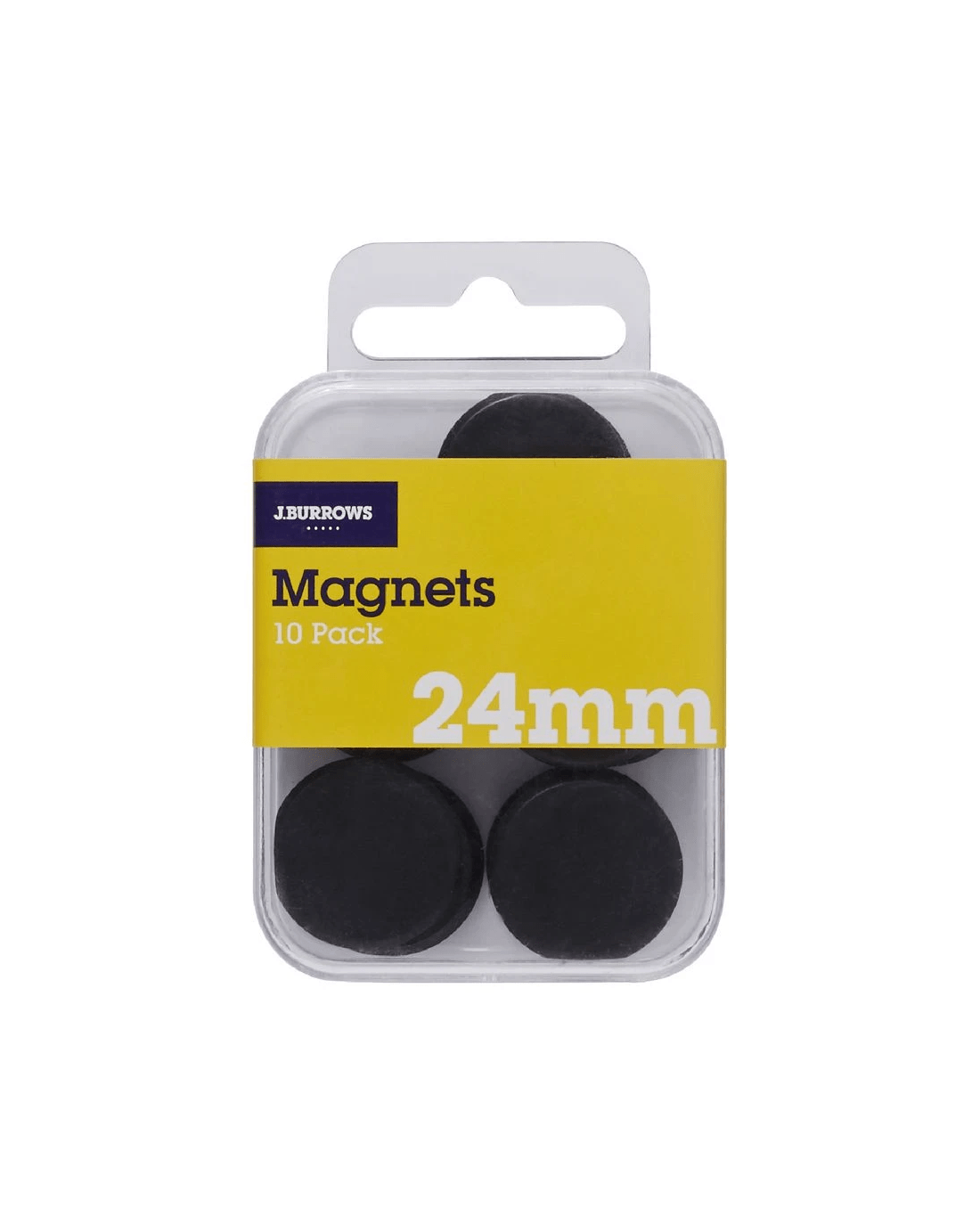 J.Burrows Round Magnets are a great option for holding, storing and displaying documents and photos on any magnetic surface. Each pack contains 10 magnets that are 24 mm in diameter.