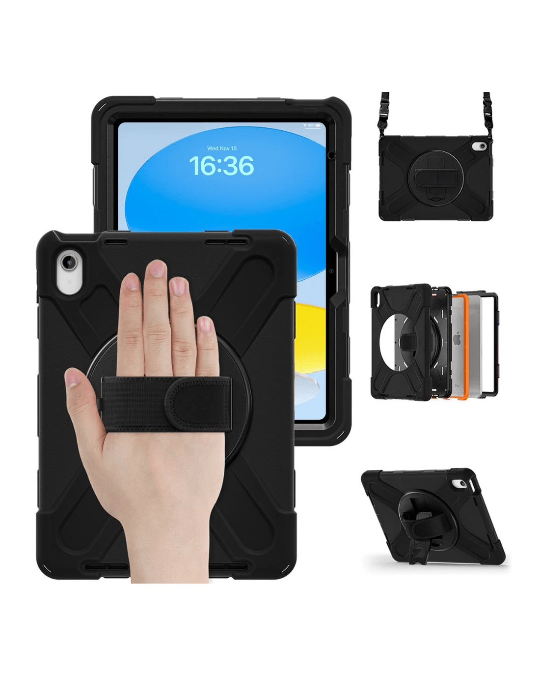 Sold by OfficeworksJ.Burrows Rugged Case iPad A16/10th Gen 10.9" Black w strap