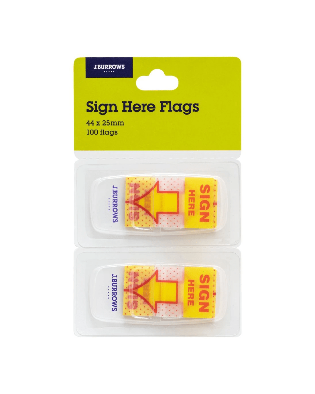 J.Burrows Sign Here Flags are perfect for use to mark and emphasise areas of important documents which require signatures. They have a strong self-adhesive backing to stay put and then remove easily without leaving any sticky residue.