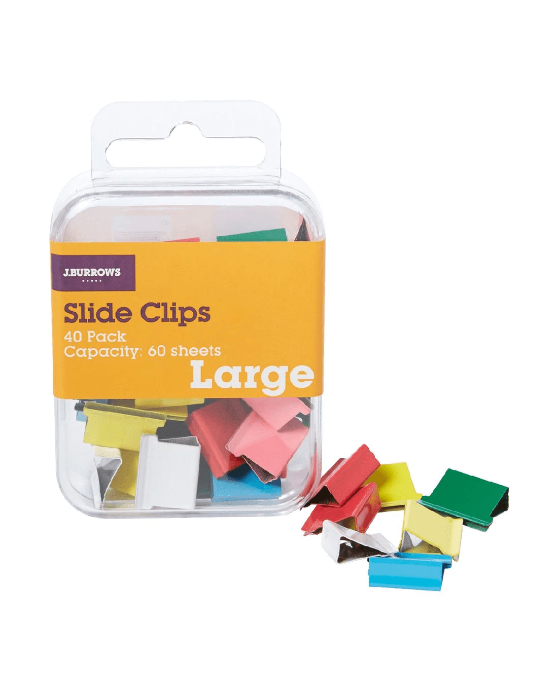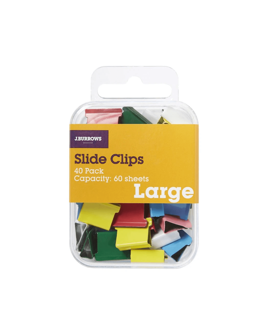 Sold by OfficeworksJ.Burrows Slide Clips Refills Large Assorted 40 Pack