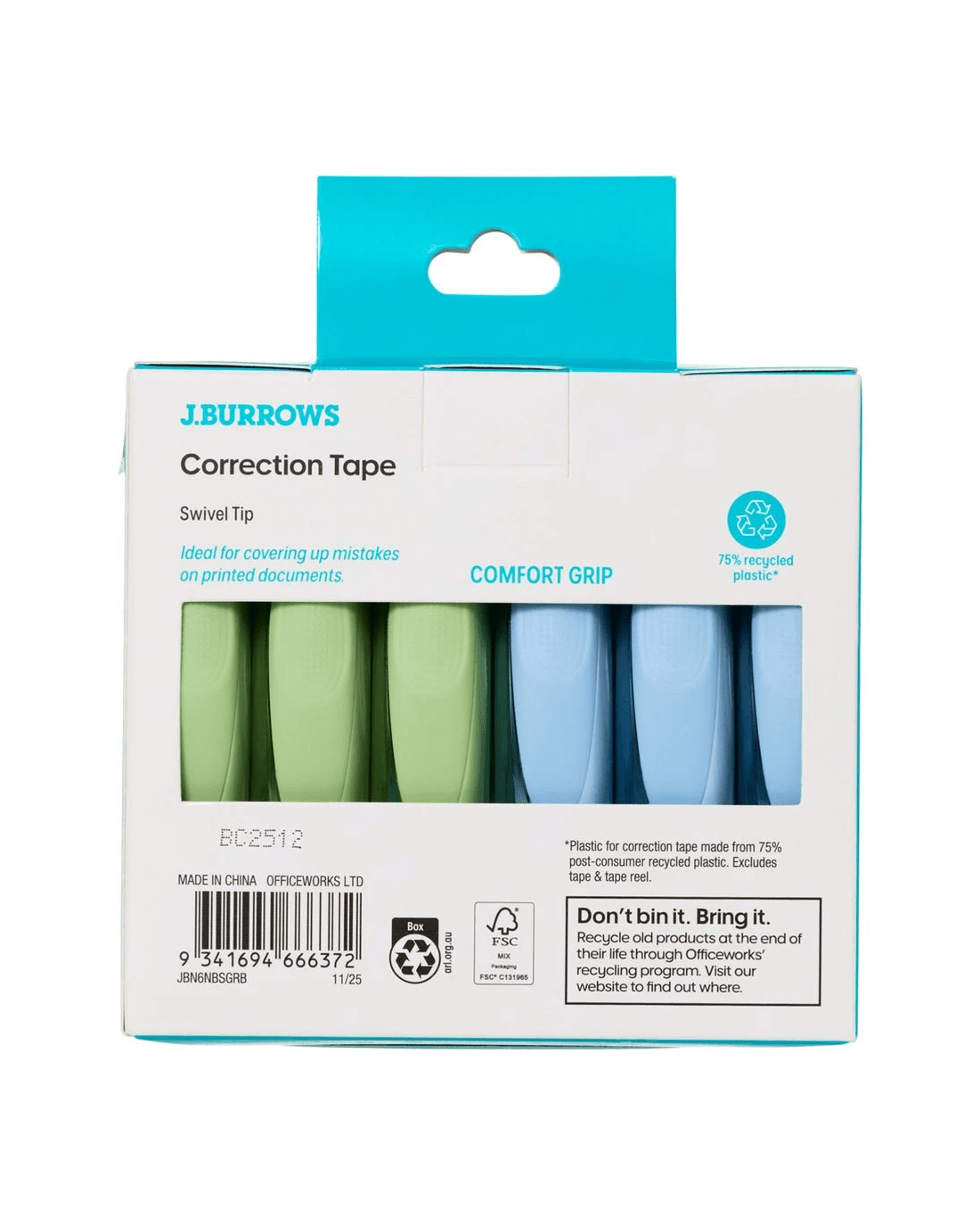 J.Burrows Soft Grip Correction Tape 5mmx8m 6 Pack