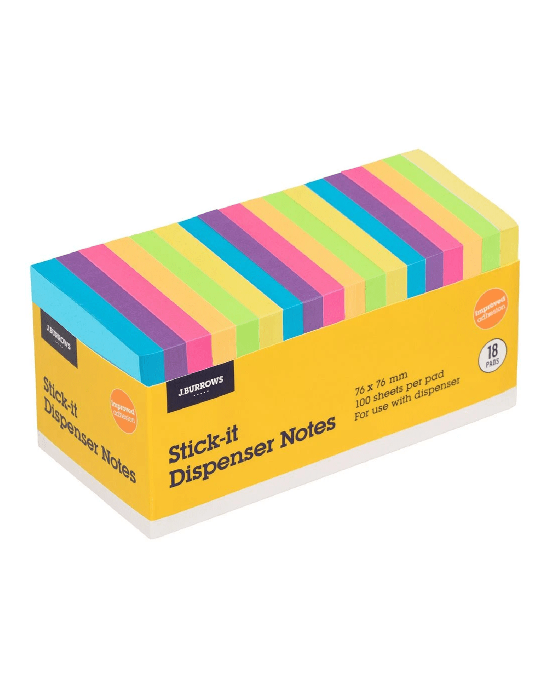 Sold by OfficeworksJ.Burrows Stick-It Dispenser Notes 76x76mm Assorted 18 Pack