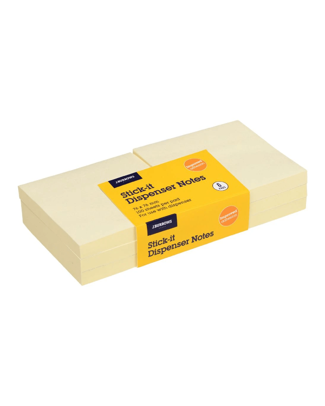 Sold by OfficeworksJ.Burrows Stick-It Dispenser Notes 76x76mm Yellow 6 Pack