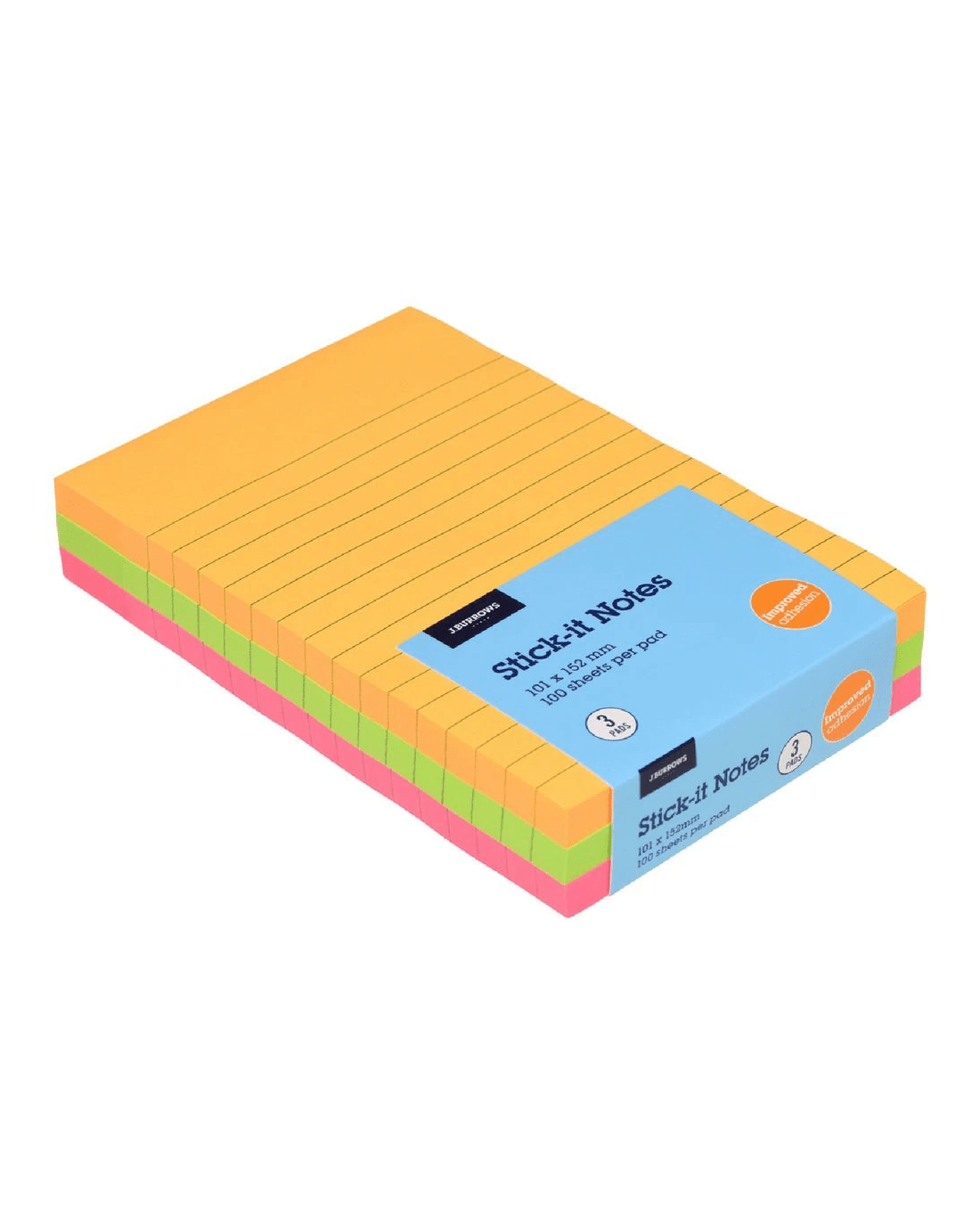 Sold by OfficeworksJ.Burrows Stick-It Notes 101x152mm Assorted 3 Pack