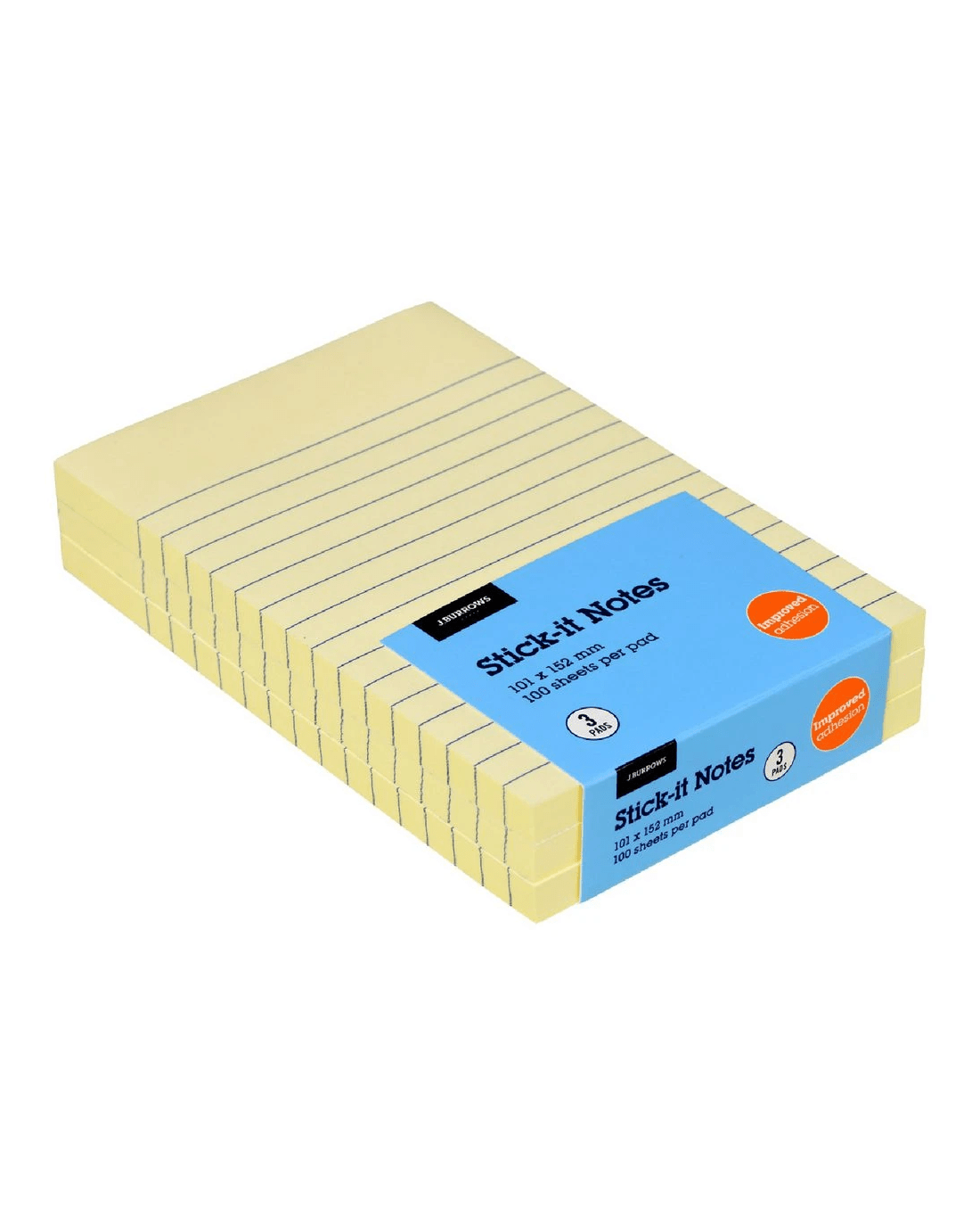 Sold by OfficeworksJ.Burrows Stick-It Notes 101x152mm Yellow 3 Pack