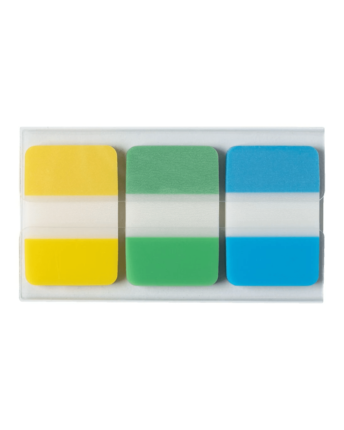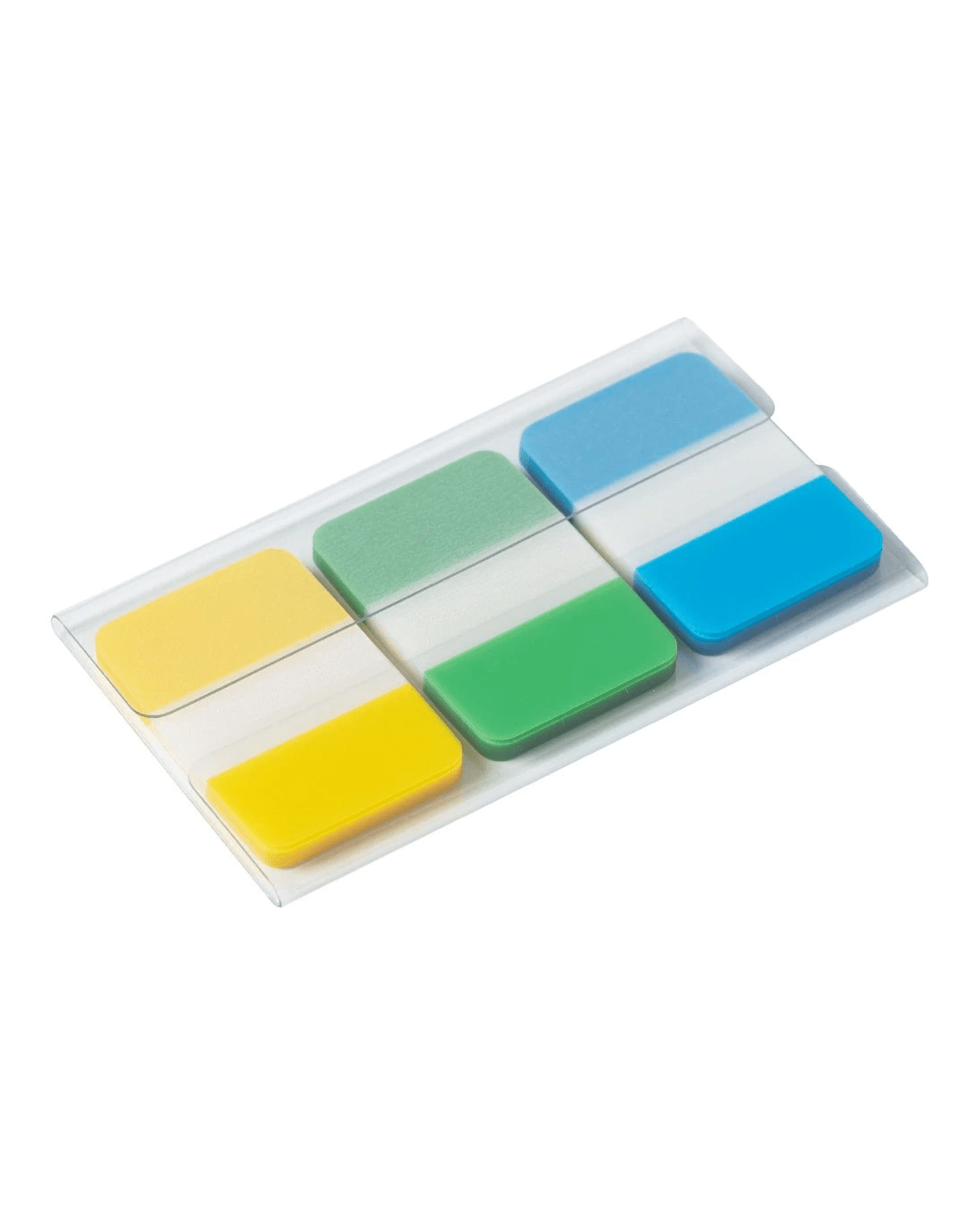 - The tabs come in blue, green, and yellow.