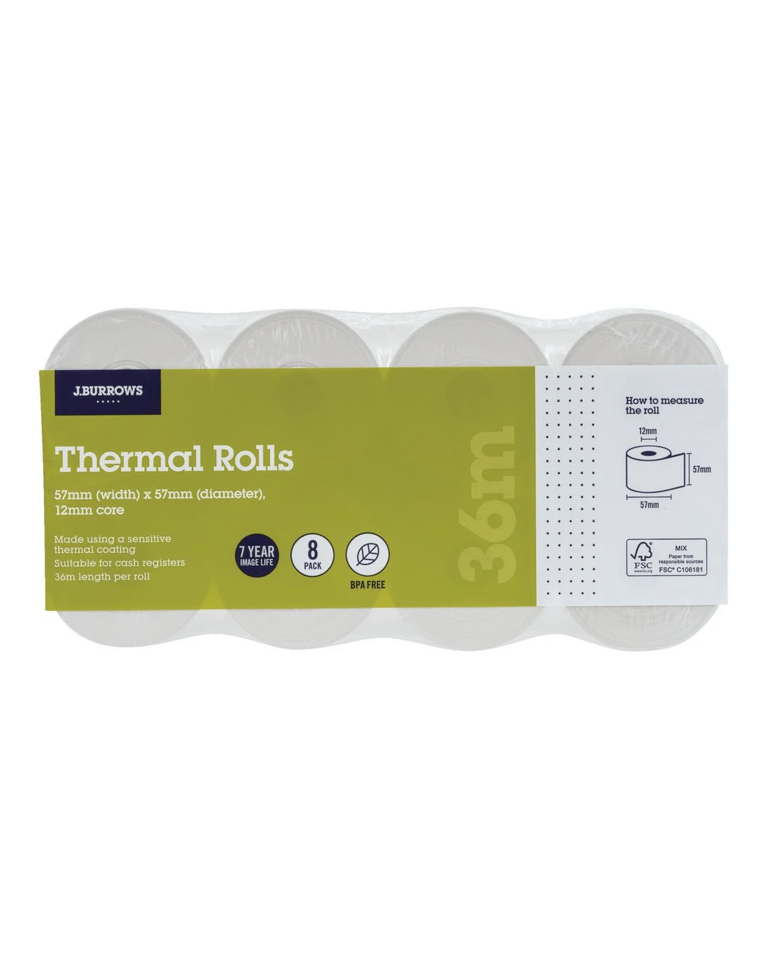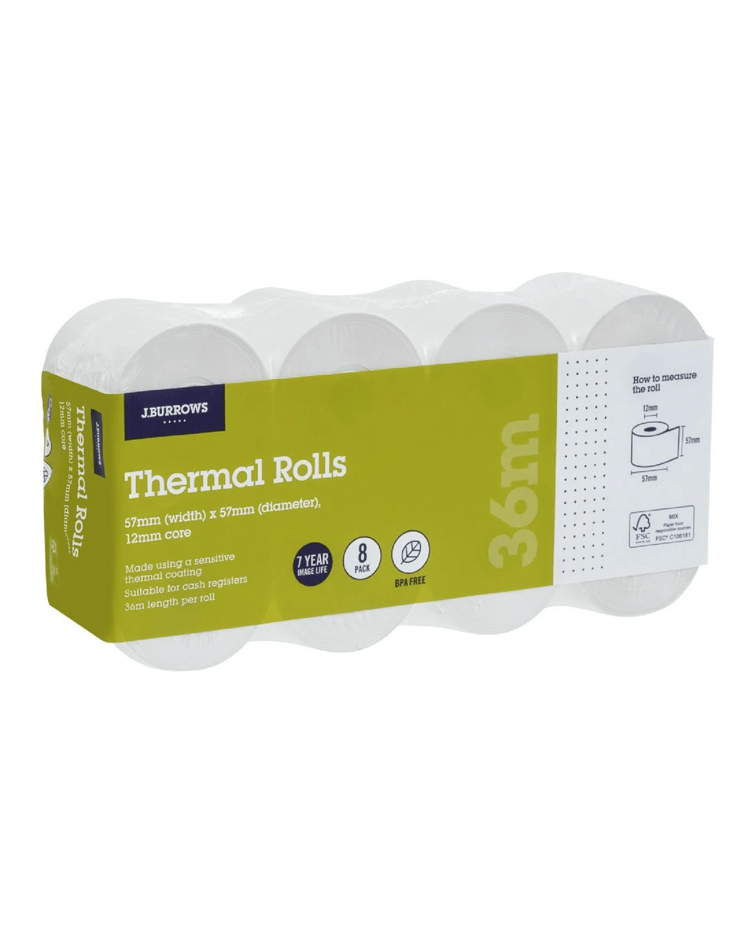 These J.Burrows Thermal Rolls allow you to print out receipts for customers and measure 57 x 57 mm for compatible cash registers. They are BPA free and come in a pack of 8.
