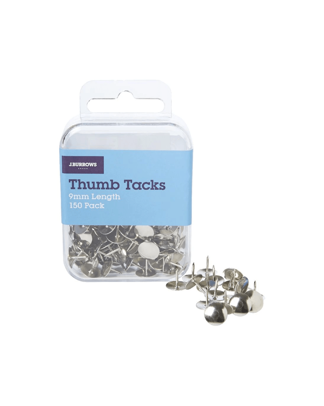 These J.Burrows Thumb Tacks are perfect for keeping in your home or workspace so you can display photos, flyers, invitations, cards and other notices. Each tack has a strong steel point which will resist breaking during use.