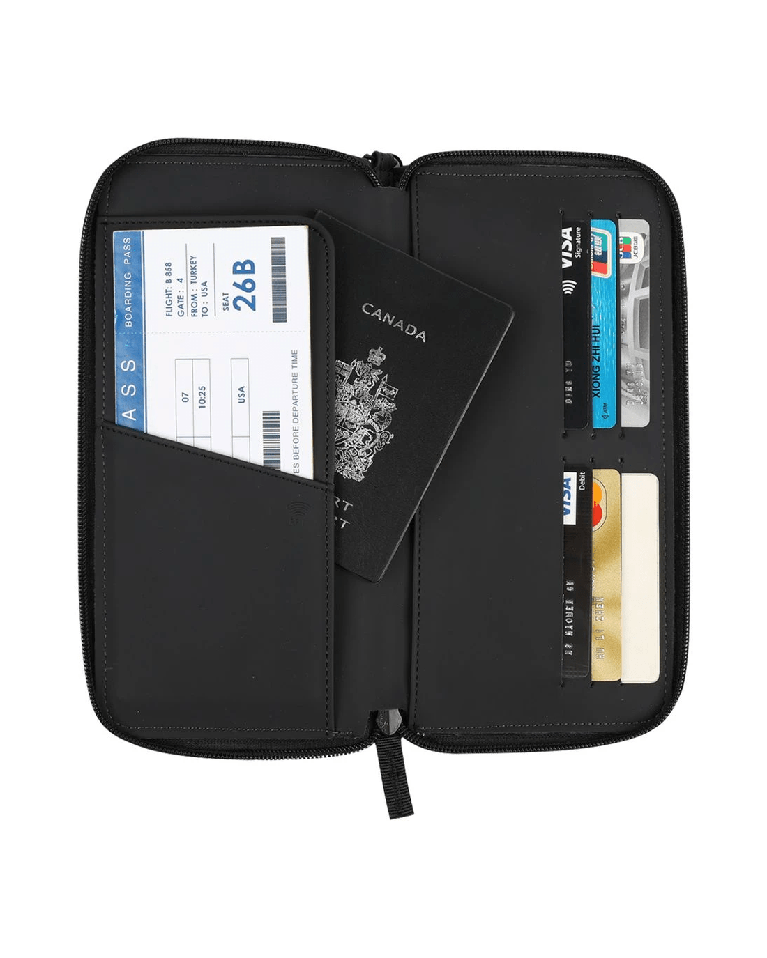 - It's handy for storing, passports, tickets, and other small items while on the go.