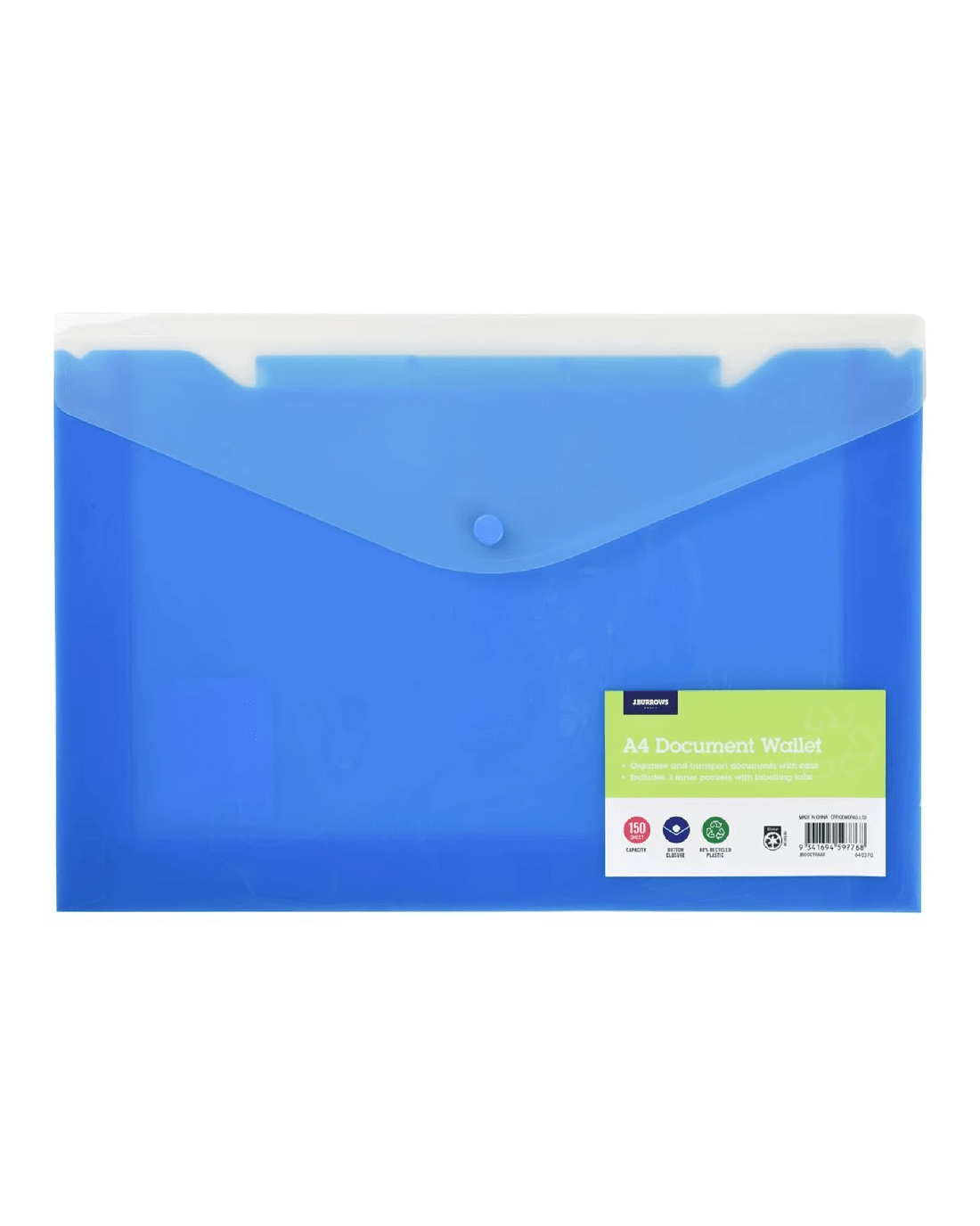 Keep your files together in this J.Burrows Document Wallet. It's designed to fit A4 documents, with a capacity of 150 sheets.