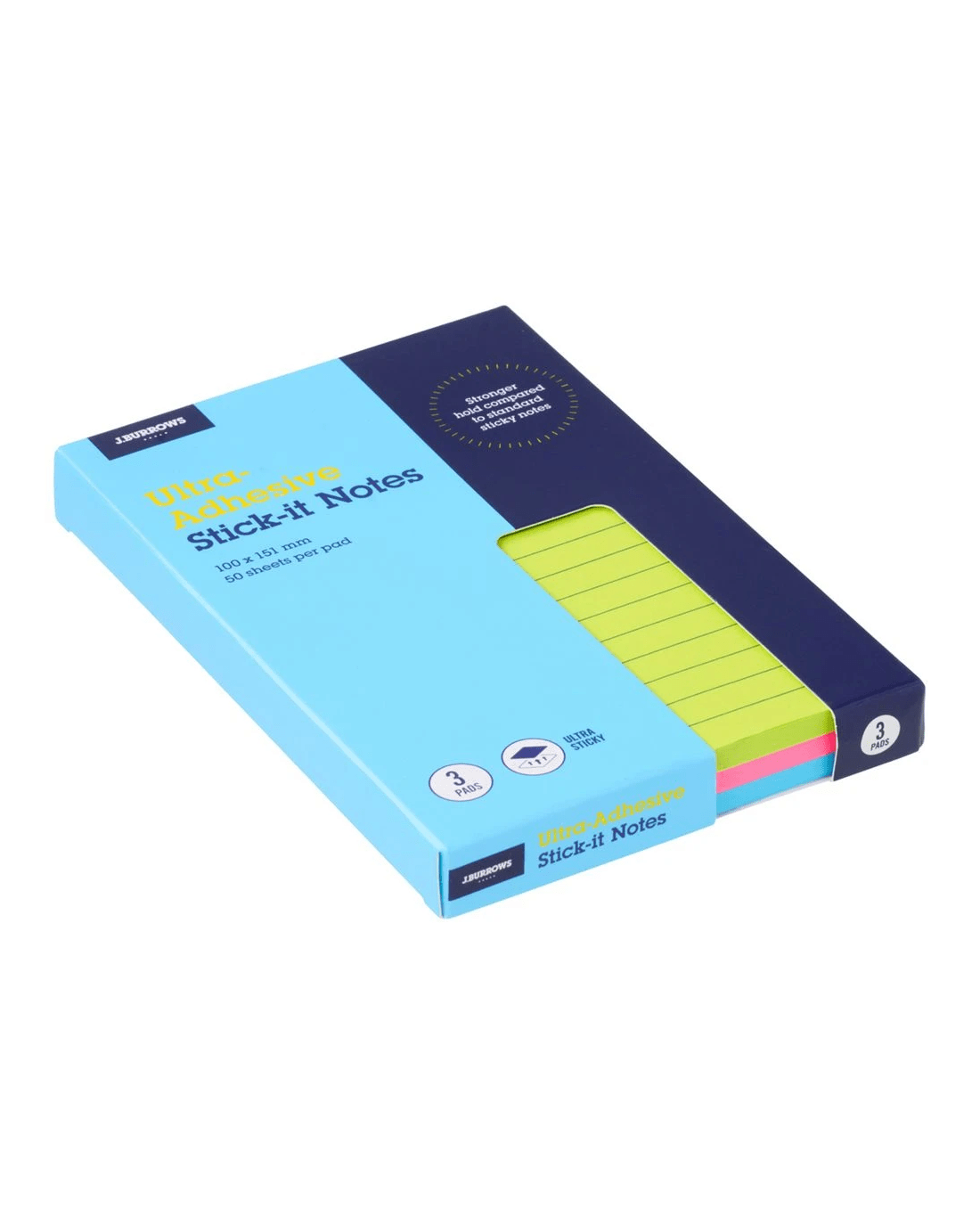These J.Burrows Ultra-Adhesive Stick-It Notes are ideal for leaving memos and reminders around your workspace. They are ultra sticky with stronger adhesion compared to standard stick-it notes. Plus, the 101 x 152 mm in size for plenty of room to jot down information, allowing you to streamline your schedule.