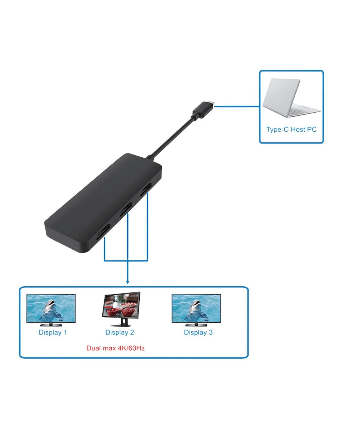 Stream more with this J.Burrows USB-C to Triple HDMI Adapter with DP1.4 Alt Mode. Connect up to 3, 4K HDMI displays at the same time. This USB-C male connector is compatible with newer USB-C laptops and other USB-C enabled devices.