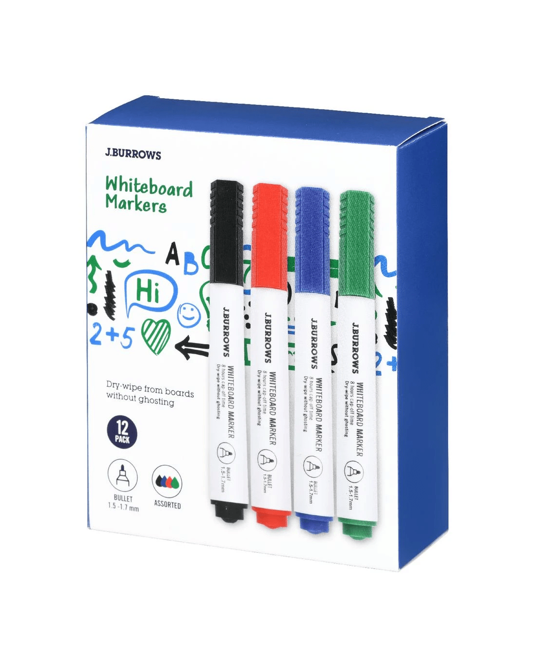 Sold by OfficeworksJ.Burrows Whiteboard Markers Bullet Assorted 12 Pack